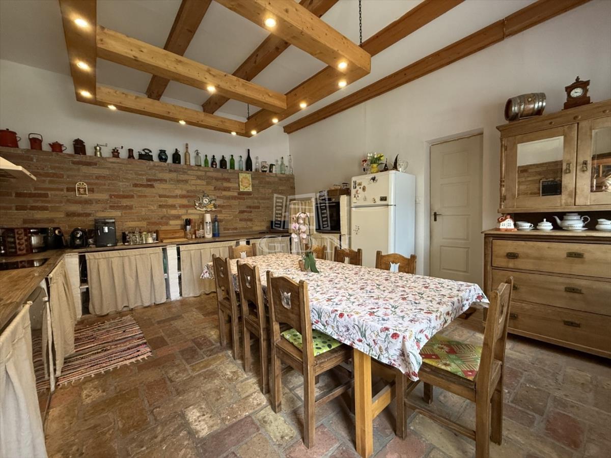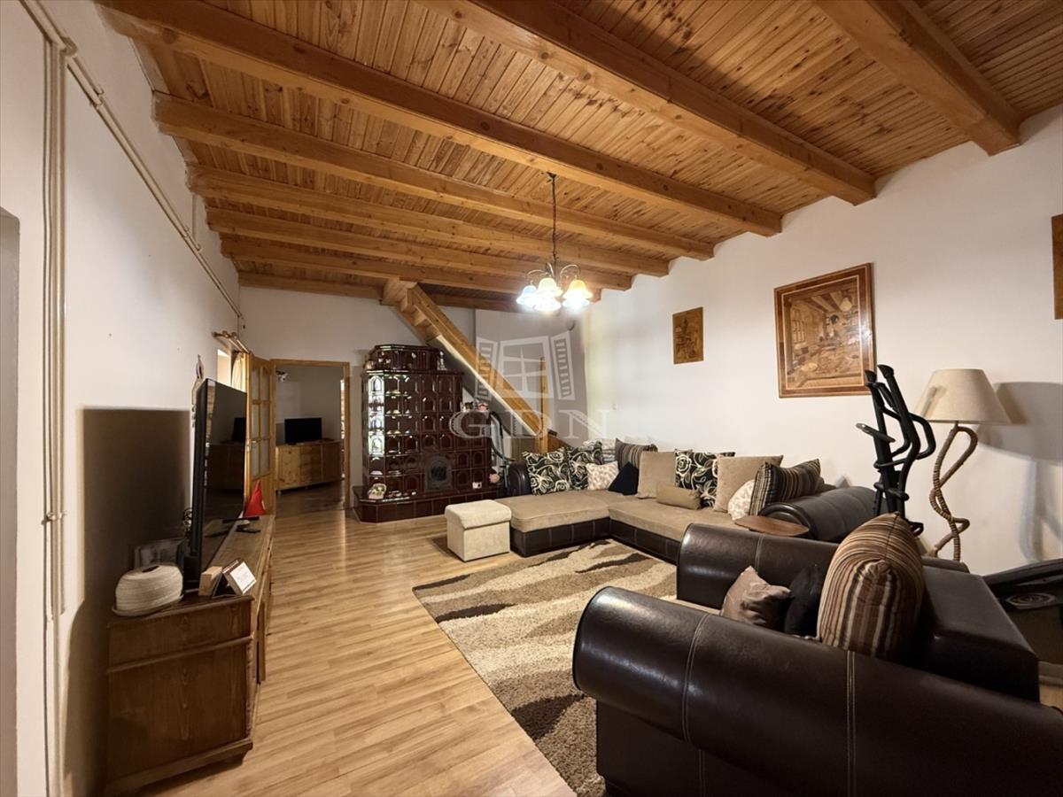 •Földszinti lakás (93 m²): rusztikus hangulatú, előszoba, konyha-étkező, tágas, világos nappali (35 m²), hálószoba, fürdő (zuhanyzós), külön wc, háztartási helyiség. Hangulatos, látszógerendás mennyezet és cserépkályha teszi különlegessé.
