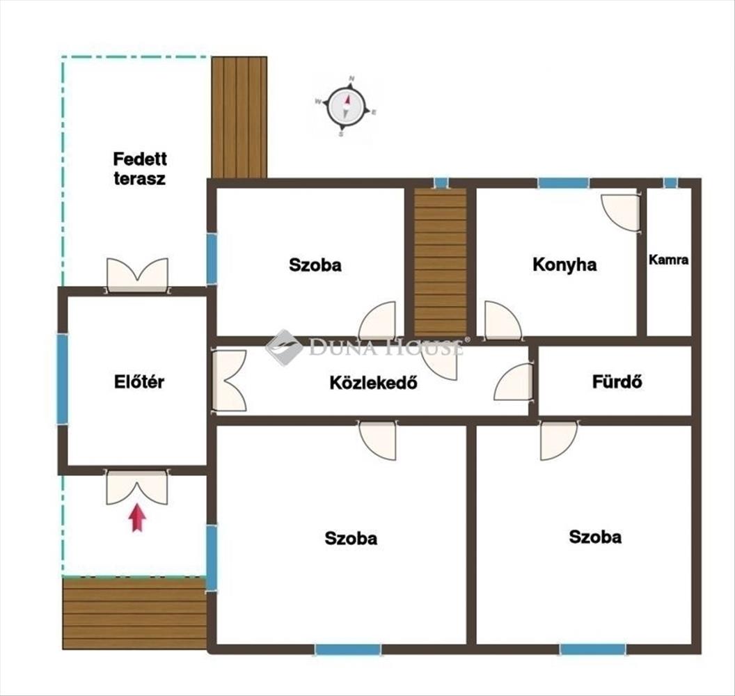Fa, jó állapotú nyílászárók találhatók melyek redőnnyel vannak ellátva.