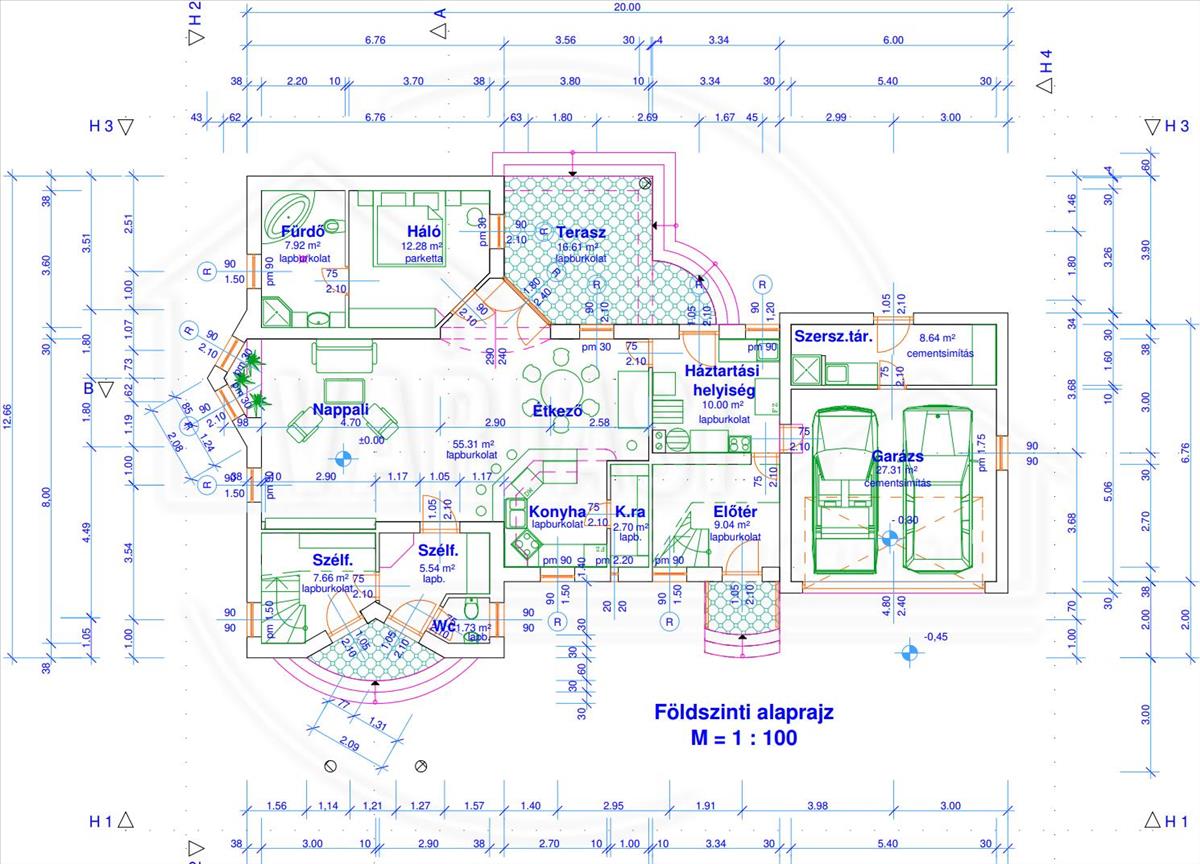 -Iroda (3db): 35 m2, garázs (2db): 27 m2, egyéb helyiségek: 28 m2;