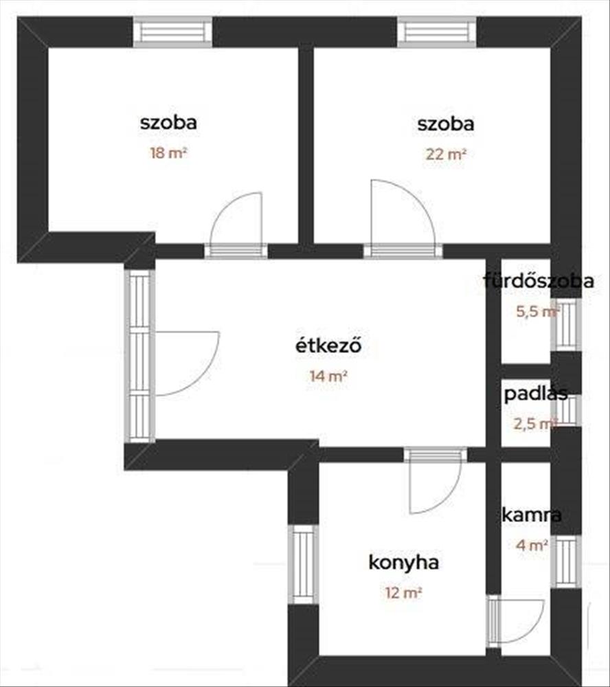 • Kényelmes elrendezés : 2 külön nyíló szoba, étkező, konyha, kamra, fürdőszoba-WC, és tároló.