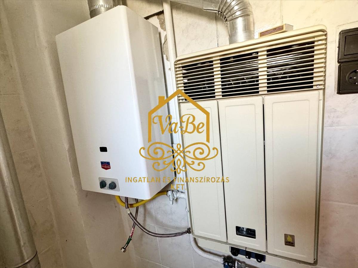 A fűtésről Pelgrim gázkonvektorok, a melegvíz ellátásról átfolyós gázbojler gondoskodik.