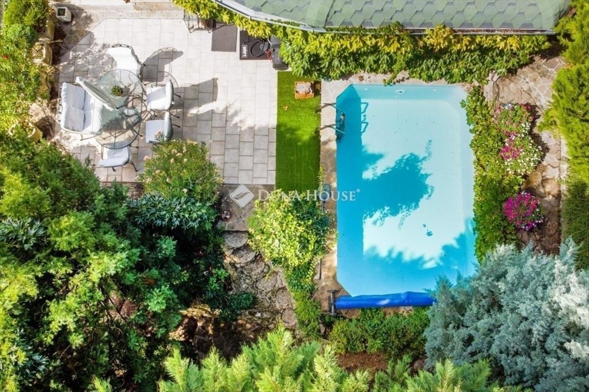 A ház enteriőrjének eklektikus eleganciáját egyedi tervezésű bútorok és gondosan válogatott prémium márkák képviselik. a kertben kültéri medence gondoskodik a nyári felfrissülésről, míg a telek végében egy hangulatos egyszobás rönkház kínál meghitt menedéket szinte az erdő ölelésében.