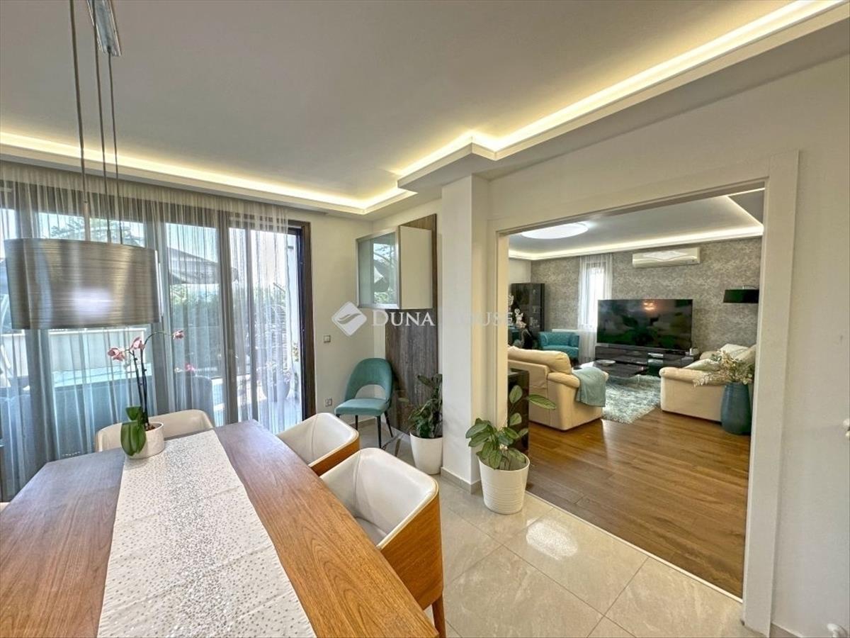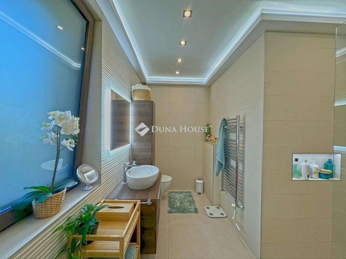 *****Prémium életérzés Budapesttől 15 percre*****3 szintes, teljeskörűen felújított villa, prémium és természetközeli életérzéssel. 2015-Ben épült, majd 2022-ben műszakilag és esztétikailag mindenre kiterjedően felújított, 291 m²-es, igényesen megtervezett családi ház. Az épület egy 889 m²-es telken, Szentendrén, Pismányban található. Az ingatlan 6 tágas szobával, gardróbbal, étkezővel, modern konyhával, mosókonyhával, 2 fürdőszobával és összesen 4 WC-vel rendelkezik, melyek közül 2 külön helyiségben található. Az ingatlan tehermentes. a prémium életérzést a 75 m²-es, üvegkorlátos körpanorámás terasz, jakuzzi, padlófűtés, 5 inverteres klímaberendezés, elektromos redőnyök, fűtött gépkocsi-beálló, valamint a kétállásos garázs biztosítja. a biztonságról riasztó- és 360 fokos kamerarendszer gondoskodik. a kert:Öntözőrendszerrel ellátott 889 m²-es telek, ami igény szerint kibővíthető 1199 m²-re. Örökzöldekkel parkosított intim kert, holland pázsit, mészkő járólapok, 5 személyes Wellis jacuzzi biztosítja a felfrissülő pihenést. Az épület:Az ingatlan háromszintes, összesen 291 m² hasznos alapterülettel, melyből a pince- és garázsszint 101 m², a földszint 111 m², míg az emelet 78 m². a földszinten egy 24 m²-es, az emeleten pedig egy 51 m²-es egybefüggő, üvegkorlátos terasz található. a 2022-ben kialakított belső térben egy hatalmas nappalit, négy hálószobát, egy gardróbszobát, külön konyhát és étkezőt, továbbá két fürdőszobát illetve két különálló WC/mosdót találunk. a garázsszinten mosókonyha, gépészti helyiség, tároló/szoba, valamint előszoba kapott helyet. Ezen a szinten található az egyik külön mosdó is. Az épület kiváló hőszigetelését 38 cm vastag Porotherm tégla külső falazat és 20 cm-es grafitos szigetelés biztosítja, míg a megjelenést prémium minőségű süttői mészkő homlokzati burkolat teszi teljessé, mely szintén 2022-ben került felújításra. Az épület szintjei:Emelet: 78 m² + 51m² teraszAz emeleti szinten egy 51 m²-es, örök körpanorámás egybefüggő terasz került kialakításra. a terasz elérhető az ezen a szinten található, mindhárom hálószobából (21 m² + 18 m² + 16 m²) egyaránt. Itt kapott helyet egy tágas fürdőszoba is. (Kád + zuhanyzó + wc + szennyesledobó, mely a garázsszinten lévő mosókonyhába érkezik. Ez a ledobó használható a gardróbszobából is)Földszint: 111 m² + 24m² teraszEzen a szinten található a 24 m²-es egybefüggő panorámás terasz, mely közvetlen kapcsolattal nyílik a 32 m²-es nappaliból és a 29 m²-es konyha-étkezőből. a nappaliból a közlekedőn át jutunk el a 9 m²-es gardróbszobába, valamint a hálószobába, mely privát bejáratú fürdőszobával (zuhanyzó + wc) kialakított. Innen kilépve az előszobából nyílik a különálló vendég wc a bejárat mellett. Garázs: 101 m²A garázs szinten található az elektromos duplakapus, többállásos garázs, a szennyesledobóval felszerelt mosókonyha, diszkréten elrejtett gépészeti helyiség, külön tárolóhelyiség, ami akár wellnessrészleg, fitneszterem, hobbi- vagy játékszoba céljára is átalakítható. Prémium minőségű alapanyagok:Nyílászárók:Hofstädter ÖkoStyle 3 rétegű műanyag hő-és hangszigetelt nyílászárók (Uw =0, 78 W/m2K)Elektromos alumínium redőnyök, pliszé szúnyoghálóvalEnergetika:Korszerű energetikai tanúsítvány (B)Új baxi gázkazán + melegvíztartályÚj padló + radiátoros fűtés helyiségenkénti szabályozássalÚj villanyvezeték hálózat és biztosító táblaInverteres hűtő-fűtő klímák minden helyiségbenPrémium kategóriás szaniterek (Geberit, Teka, Duravit, Grohe)Tolószekrénybe rejtett gépészeti helyiségAlacsony fenntartási költségekKülső anyagok:38cm Porotherm külső falazat 20cm-es grafitos hőszigetelésselÚj sütői mészkő homlokzati burkolatÚj dupla biztonsági üveges, acélvázas szerkezetű korlátÚj terasz szigetelés és burkolatBelső anyaghasználat:Prémium, exkluzív hidegburkolatokValódi diófa és prémium lamináltparkettaKőris lépcsőházi burkolat és fém és kőris korlátÚj led lépcsőházi lábtér világításÚj beépített és gépesített nobilia konyhabútor kvarc munkalappalÚj beépített gardróbbútor, a modern konyha prémium kategóriás Siemens háztartási gépekkel felszerelt, mely garantálja az energiatakarékosságot és a kiváló minőséget. Megközelítés:Az ingatlan végig aszfaltos úton megközelíthető, így minden évszakban kényelmesen elérhető. Szentendre Pismány városrészét elsősorban csendes, zöldövezeti környezete és panorámás fekvése teszi vonzóvá. a környék kiváló választás családoknak illetve csendre, nyugalomra vágyóknak, hiszen erdők, kirándulóhelyek, valamint a Szentendrei-Dunaág is a közelben található. Autóval Budapest 15-20 perc alatt elérhető. a legközelebbi buszmegálló mindössze 70 méterre található, így akár autó nélkül is gyorsan elérhető a város. a Duna House teljes kínálatával kapcsolatban forduljon hozzám bizalommal. Hitel ügyintézés garantáltan a legjobb feltételekkel és a leggyorsabban díjmentesen. Eladás és vétel teljes körű ügyintézése, ingyenes tanácsadás, értékbecslés, megbízható ügyvédi háttér biztosítása. Hitel.hu - Hasonlítsa össze a bankok lakáshitel ajánlatait