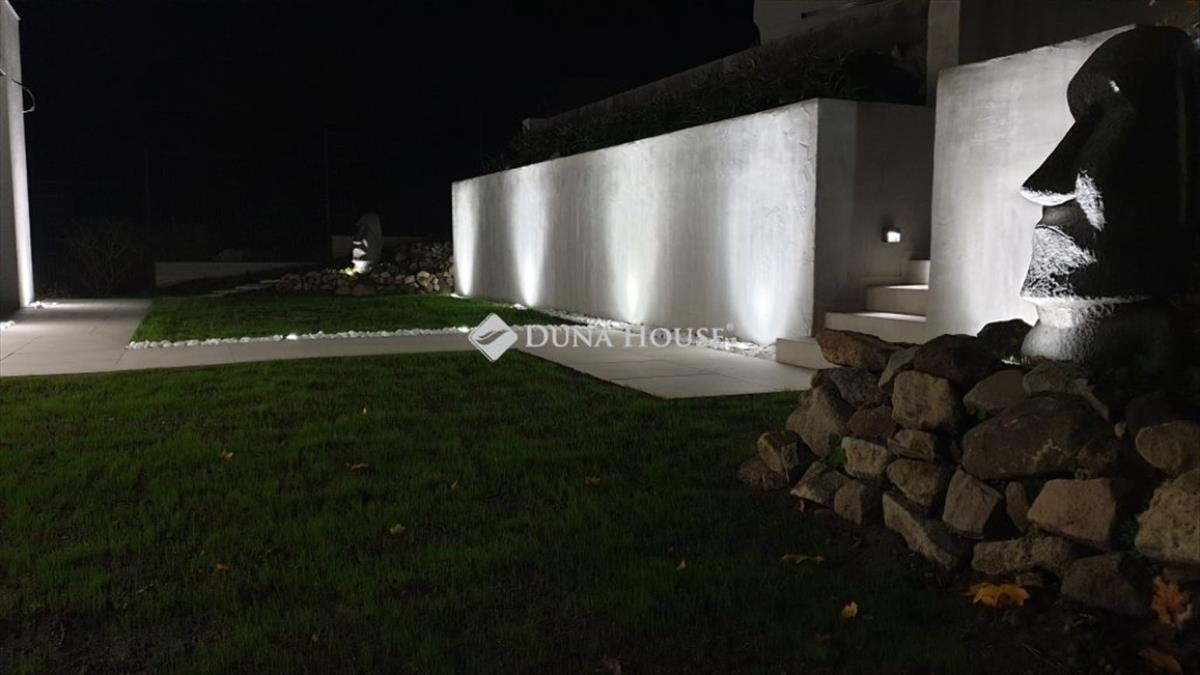 - Díszvilágítás a kocsibeállónál és a járdánál; a ház alulról-felülről külön kapcsolható megvilágítása