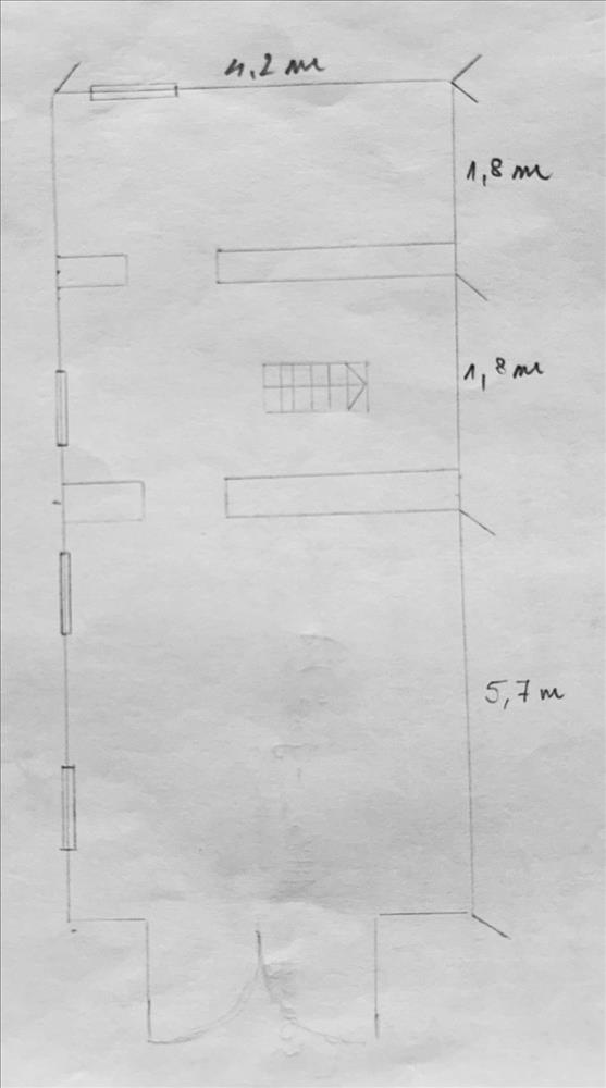 Upstairs: two rooms, kitchen, bathroom and living room with balcony.
