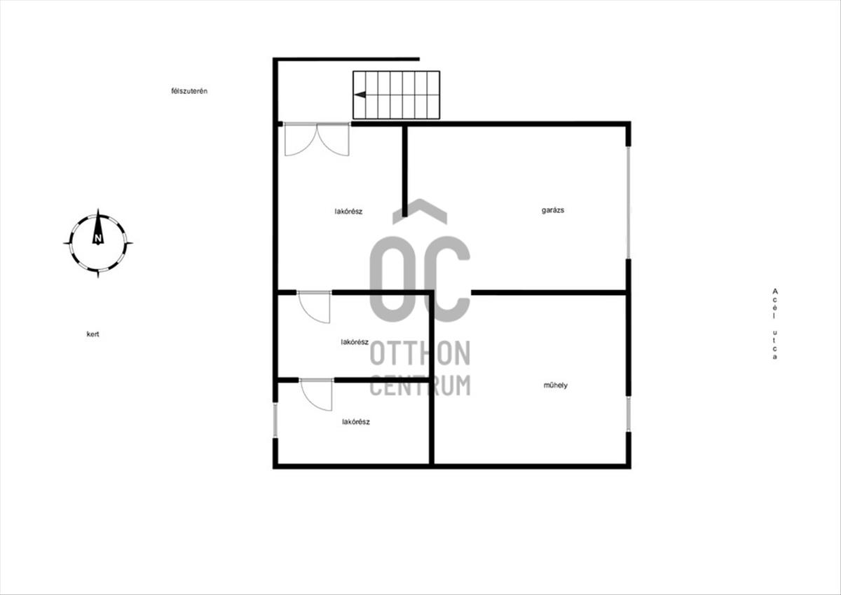 A ház szuterén szintjén ki lett alakítva egy cca. 25 m2-es műhely, egy 1 db gépkocsi állásos garázs és egy 2 szobás külőn lakrész. a legfelső tetőtéri szinten az ablakok ki lettek alakítva, de beépítésre nem került. Ott nincs kialakított lakótér.