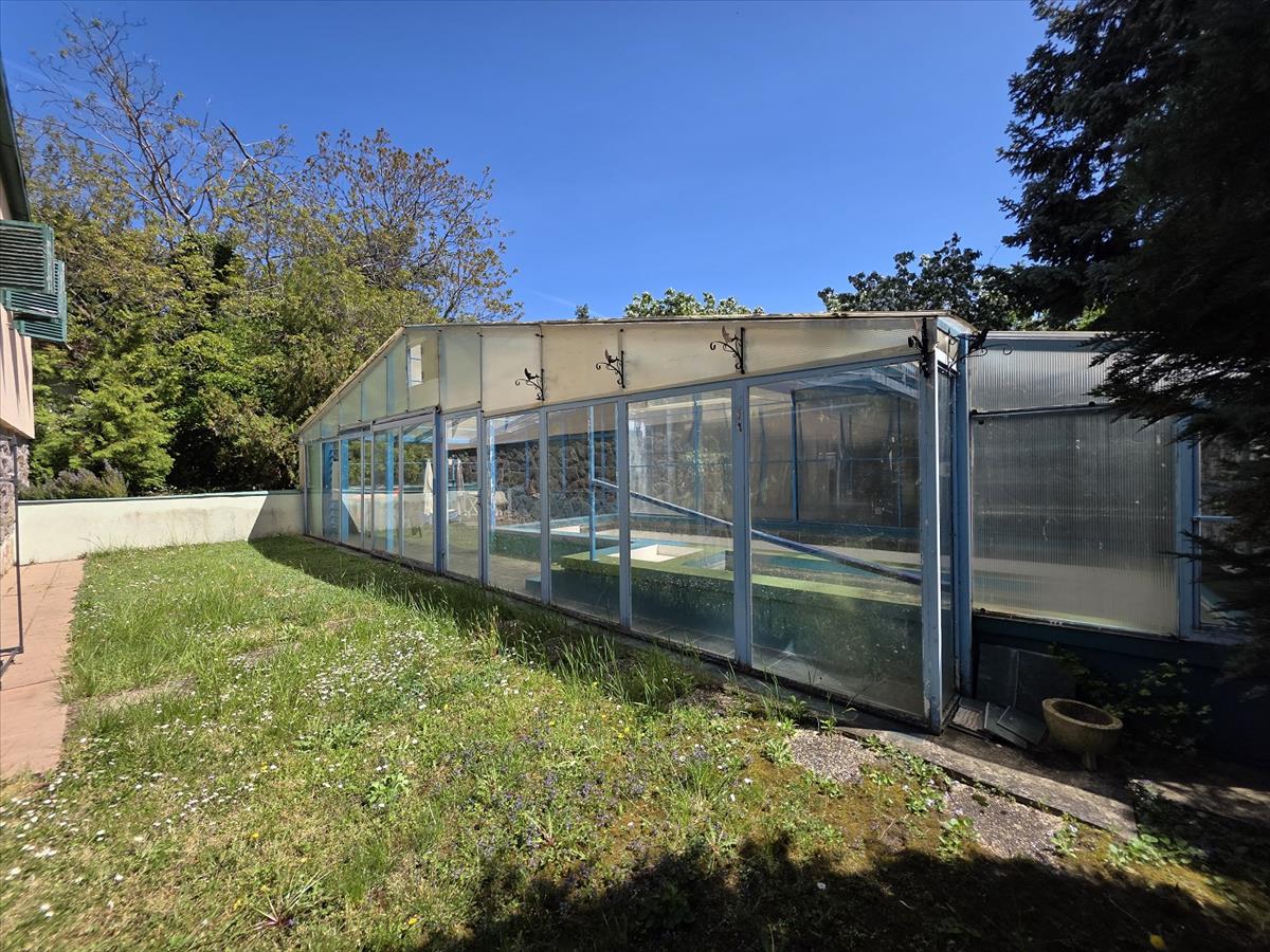 Szentendre Pismány részén eladó 1979-ben épült 155 m2-es kétszintes családi ház fedett kocsibeállóval és fedett medencével, rendezett 618 m2-es telken.