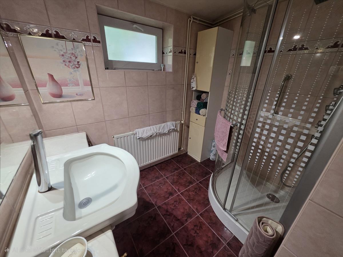 Alsó szint: Előszoba, kazánház, zuhanyzós fürdőszoba, wc, tároló, szoba.