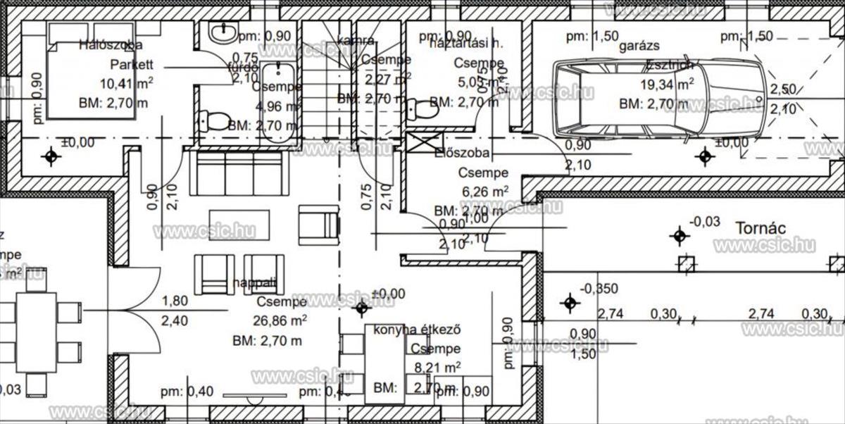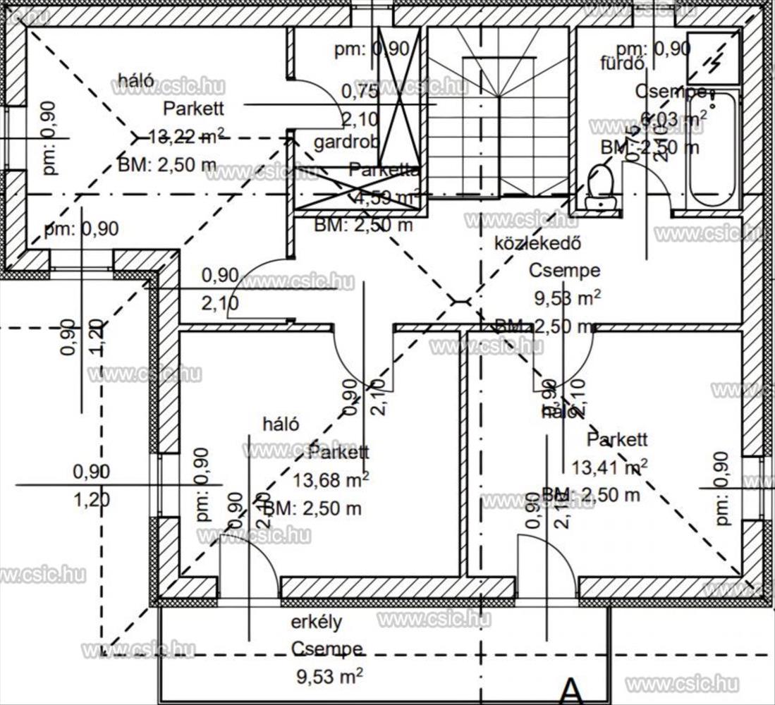 Az emeleten közlekedő, 3 szoba, fürdőszoba és egy gardrób kap helyet.