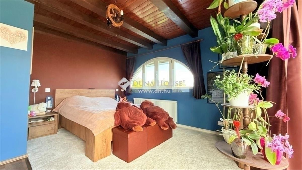 Elvehetetlen panoráma az erdő mellettAki maximális nyugalomra, csendre és pihenésre vágyik otthon a nyüzsgő mindennapok után, az megtalálta álmai otthonát. Szentendrén, a Kada csúcson eladó sorba került ez az egyedi jegyeket hordozó, különleges családi otthon. a panoráma mellett az erdő közvetlen szomszédsága is rendkívül hangulatos és szemet gyönyörködtető. Eredetileg az 1970-es években, kőből készült ház arra a koncepcióra épült, hogy minden helyiségből az elvehetetlen panorámát élvezhessük. Ennek megfelelően minden helyiség nagy ablakokkal rendelkezik, hogy szinte a természetben érezzük magunkat. a földszinten az előszobába, majd onnan az étkezős konyhába jutunk. a nappalit egy duplaszárnyú terasz ajtóval akár egybenyithatjuk a kb. 40 Nm-es fedett terasszal. Semmi nem zavarja a pazar kilátást. Található még itt egy zuhanyzós fürdőszoba is. Lépcsőn jutunk a tetőtérbe, ahol az átalakítást követően egy kellemes méretű hálószoba terasszal, egy nagy méretű fürdőszoba, a közlekedőben gardrób, és egy gardrób/tároló/dolgozó került kialakításra. Igény esetén két hálószoba is megoldható. Mindenhonnan hatalmas, egyedi ablakokon keresztül csodálhatjuk a kilátást. Akinek igénye van több szobára, a terasz beépítésével is nyerhető még egy vagy két hálószoba. 2021-Ben a házat teljes mértékben felújították műszakilag és esztétikailag egyaránt. a fűtésről egy gázkazán gondoskodik, alsó szinten padlófűtés, emeleten radiátorok, illetve hűtő-fűtő klíma található. a ház alacsony rezsivel fenntartható, hála a 20 cm-es grafitos szigetelésnek, valamint a szaldó elszámolásban működő, bővíthető 6 kW-os napelemes rendszernek. a teljes terasz alatt található még 3 helyiségből álló tároló, ami akár nyári konyhának, vendéglaknak, vagy a lakótérhez építve hálószobáknak is alkalmas lehet. a kert szintezett a lejtése miatt, ennek ellenére jól kihasználható akár kisgyerekkel is. a ház külső, esztétikai felújítása, kert rendezése, autóbeálló rendezése az új tulajdonosra vár.