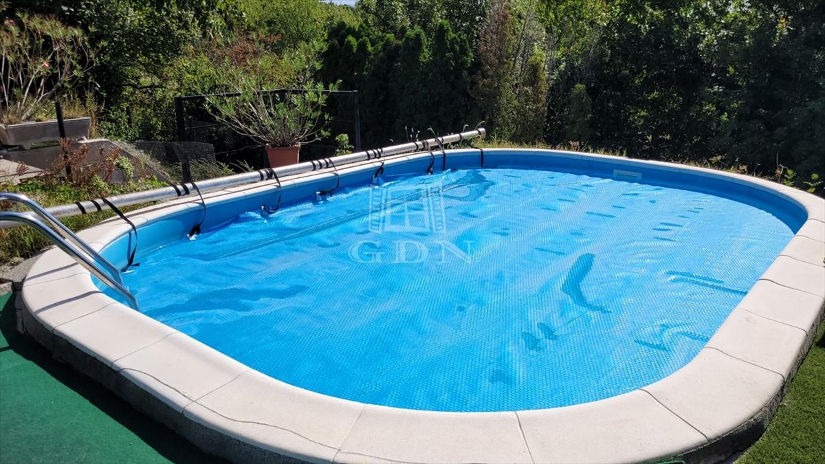 Szentendre tyúkosdűlői részén, hegyoldalban elhelyezkedő, 580 m² nagyságú, lépcsőzetes kialakítású telken, 2004-ben épült tégla szerkezetű, 80 m² hasznos alapterületű, duplakomfortos, három szobás, két generáció együttélésére is alkalmas, családi ház eladó!Az ingatlan két szintes, szigetelt. a földszinten található konyha, szoba, tárolók, 30 négyzetméter alapterületű (téliesített) terasz és egy 20 négyzetméteres vízforgatós, napelemmel fűthető, gépészettel ellátott medence, valamint egy 20 négyzetméteres garázs, elektromos kapuval.