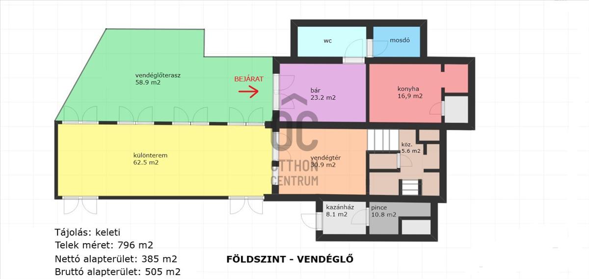 Vendéglátóhelyiség – a földszinten elhelyezkedő vendéglátóhelyiség tökéletes helyszín a saját étterem vagy kávézó nyitásához. a hatalmas terasz pedig ideális a vendégek fogadására.