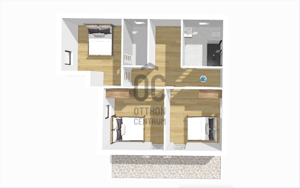 Felső szinten 3 hálószoba, fürdőszoba, gardróbszoba kerül kialakításra.