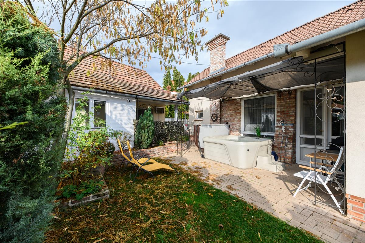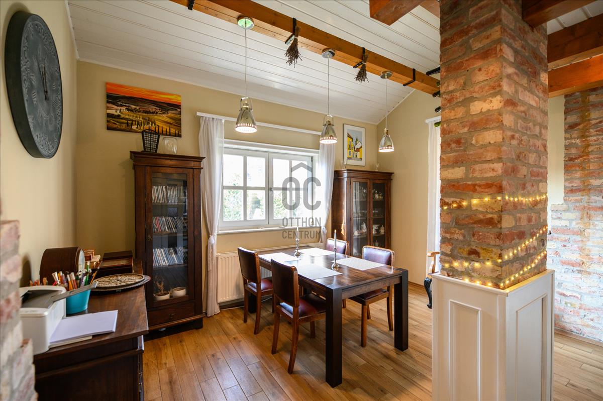 A kandalló és a gázfűtés, valamint a klíma garantálja az ingatlan kellemes hőmérsékletét télen és nyáron egyaránt. Az épületben központi porszívó rendszer, riasztó és kamerarendszer üzemel. a kisház 120 éves múltra tekint vissza, melyben 1 szoba, gardrób szoba, konyha, fürdőszoba és egy kisebb tetőtéri szoba található. a kellemes hangulatot fokozza a hozzá tartozó régi borospince. a főépület hangulatos terasza, a kerti tároló és a kézműves barkácsműhely, valamint a fedett garázs és a három autó számára beállási lehetőség biztosított, melyet kényelmesen automata garázskapuval érhetünk el.