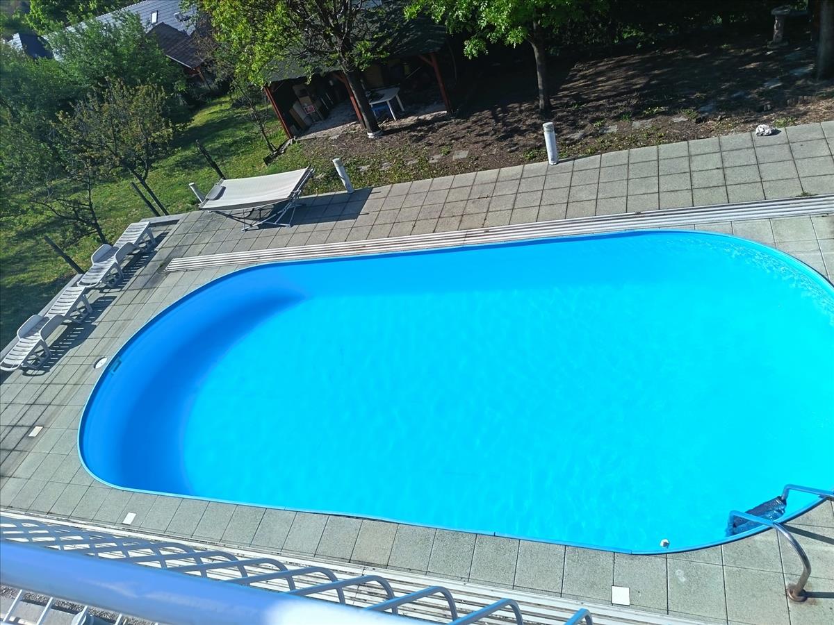A gondozott kertben a 10x4 méteres, befedhető úszómedence, a napozásra alkalmas terek és a hangulatos, fedett sütögetőhely tökéletes helyszínt nyújtanak pihenéshez és baráti összejövetelekhez egyaránt.