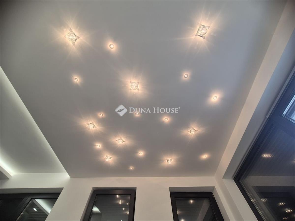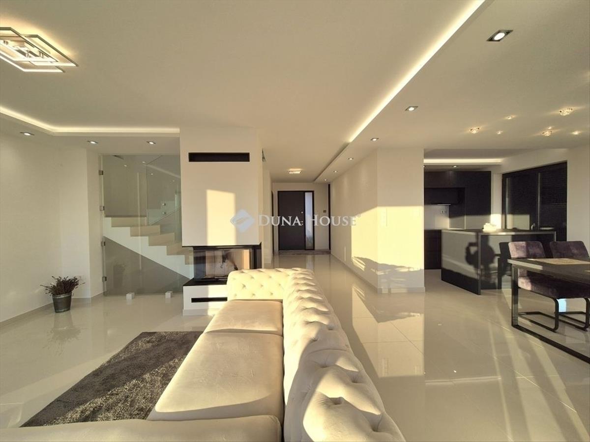 Örök panorámás, önálló családi üdülőház eladó Szentendrén, Pismányban, aszfaltos utcában, 1085 m2-es, körbekerített saroktelken. a 2020-ban épült, nettó 162 m2 lakóteret + összességében 100 m2 teraszt/erkélyt kínál, jó elosztással és igényes, prémium kivitelezéssel. Utcafront: ~1617 m. Elektromos, 4, 8 m-es úszókapu, 3 autó számára térkövezett beálló (súlytámfalas kialakítással). Alsó, kertkapcsolatos szint: külön bejáratos lakrész amerikai konyhás nappalival, hálószobával, fürdő-wc-vel, valamint ~39 m2 részben fedett terasszal. Itt található a gépház és a belső lépcsőház, így a ház egyben is használható. Felső szint (a telek lejtése miatt szintén kertkapcsolatos, északi bejárattal): amerikai konyhás/étkezős nappali, vendégszoba privát fürdővel, vendég-wc piszoárral, háztartási helyiség, valamint ~26 m2 üvegkorlátos erkély. emelet: üvegkorlátos, tágas lépcsőházból nyíló ~40 m2 panoráma terasz, 3 személyes Wellis jakuzzival. Szülői háló, gardróbszoba, prémium fürdő walk-in zuhanyfallal, Wellis szabadon álló káddal, dupla mosdóval és wc-vel. Konyha: egyedi, szuper matt akril prémium konyhabútor szigettel, beépített márkás gépekkel. Gépészet és komfort: Vaillant 24 kW elektromos kazán, 120 l indirekt HMV-tároló, vízkeringtetéses padlófűtés, hálókban falfűtés, fürdőkben külön vezérelhető törölközőszárító. Alternatív fűtésként fa tüzelésű 3d LÁTVÁNYKANDALLÓ. Műszaki és extrák:- H tarifa- napelemes rendszerhez 3x80 A-re bővített hálózat- kamerarendszer előkészítés- Burkolt kültéri lépcsők, 2 cm greslap járda- Díszvilágítás a kocsibeállónál és a járdánál; a ház alulról-felülről külön kapcsolható megvilágítása- Tükör greslap a fő helyiségekben és a lépcsőházban- Szintek között betonfödém; 11°-os, állókorcos lemezfedés fa födémmel- 5 m3 esővízgyűjtő- 30 cm Porotherm falazat gyári ragasztóval, 15 cm hőszigetelés- Fenstherm 88 md passzív, 3 rétegű, argontöltésű, antracit nyílászárók: 2 db (4, 8 m és 3 m) emelő-toló, 4 db 2, 8 m toló-bukó; roto vasalat, szúnyogháló- motoros alu redőny (pir habos lamellák)PANORÁMA: Szentendre nagy része, Duna, Lupa-tó, Dunakeszi, Fót, Budapest, Gellérthegy, Budakalász, Pomáz, Skanzen és a Pilisi hegyek. További információért és megtekintésért hívjon a hét bármely napján. Hitel.hu - Hasonlítsa össze a bankok lakáshitel ajánlatait
