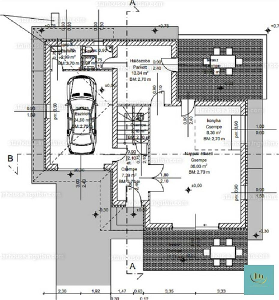 háztatási helyiség (garázsból nyílik): 2, 99 m2