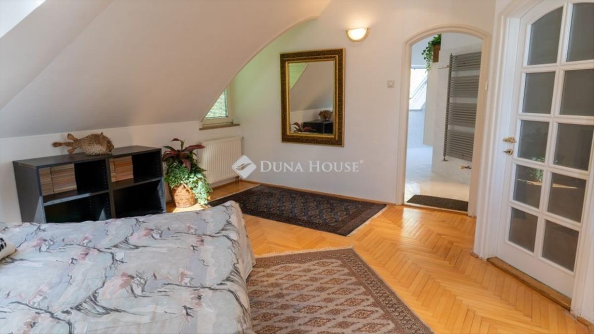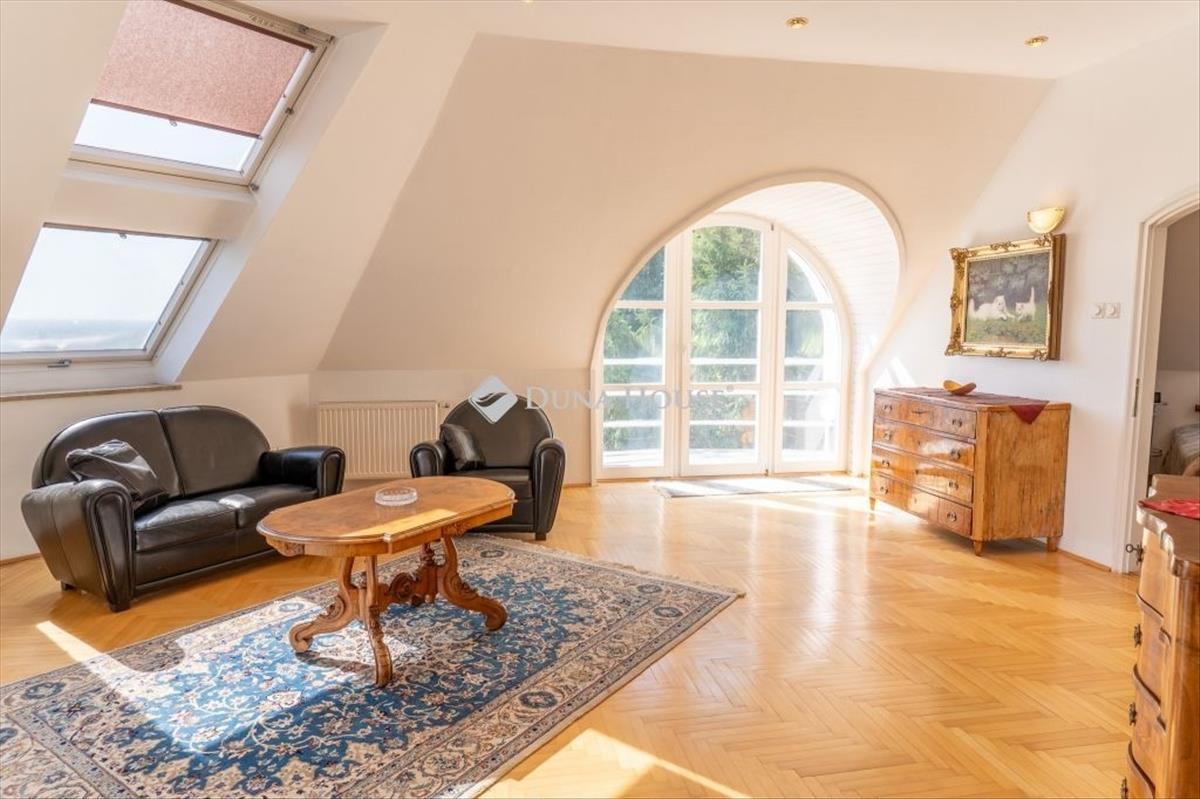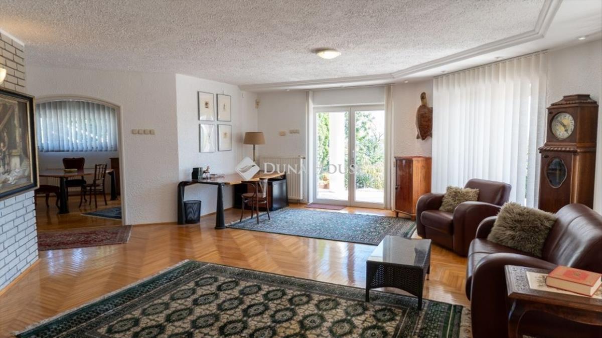 Különleges lehetőség Szentendrén: eladó egy 400 m²-es, háromszintes családi ház, amely egy 1277 m²-es telken helyezkedik el csendes zsákutcában. Az ingatlan minden szintjéről lenyűgöző panoráma tárul a környező hegyekre és a zöldövezetre, miközben kialakítása akár három külön lakrész megvalósítását is lehetővé teszi. Ideális többgenerációs együttéléshez vagy befektetésre is kiváló választás. LokációA ház Szentendre egyik nyugodt, forgalomtól mentes zsákutcájában található, biztonságos és családbarát környezetben. a környék csendje és a természet közelsége igazi értéket képvisel, miközben a városközpont gyorsan elérhető. HázA háromszintes épület rugalmas elrendezésű, prémium anyagokból épült és kiváló állapotban van. 5 Hálószoba amerikai konyhás nappali a földszinten 2 nappali 3 fürdőszoba Szauna az alsó szinten Üvegezett télikert a földszintenMinden szinthez saját panorámás terasz és kertkapcsolat tartozik, így az otthon minden részéből élvezhető a gyönyörű kilátás. Főbb jellemzők: Nagy üvegfelületek, világos, napfényes terek Fűtés gáz cirkóval, padlófűtéssel kiegészítve Riasztó és kamerarendszerExtrák Panorámás teraszok mindhárom szinten Tágas, fűtött garázs két három autó számára Gondozott kert változatos növényzettel és egy szelíd gesztenyefávalÖsszegzésEz az ingatlan Szentendre egyik csendes zsákutcájában valódi ritkaság. Háromszintes, öt hálószobás, három nappalis, télikertes és szaunás családi ház, amely minden szintjéről páratlan panorámát kínál. Akár három különálló lakásként is hasznosítható, ezért többgenerációs családoknak és befektetőknek is ideális választás. Ne hagyja ki ezt a különlegességet! Vegye fel velünk a kapcsolatot, és tekintse meg személyesen ezt a panorámás szentendrei családi házat.