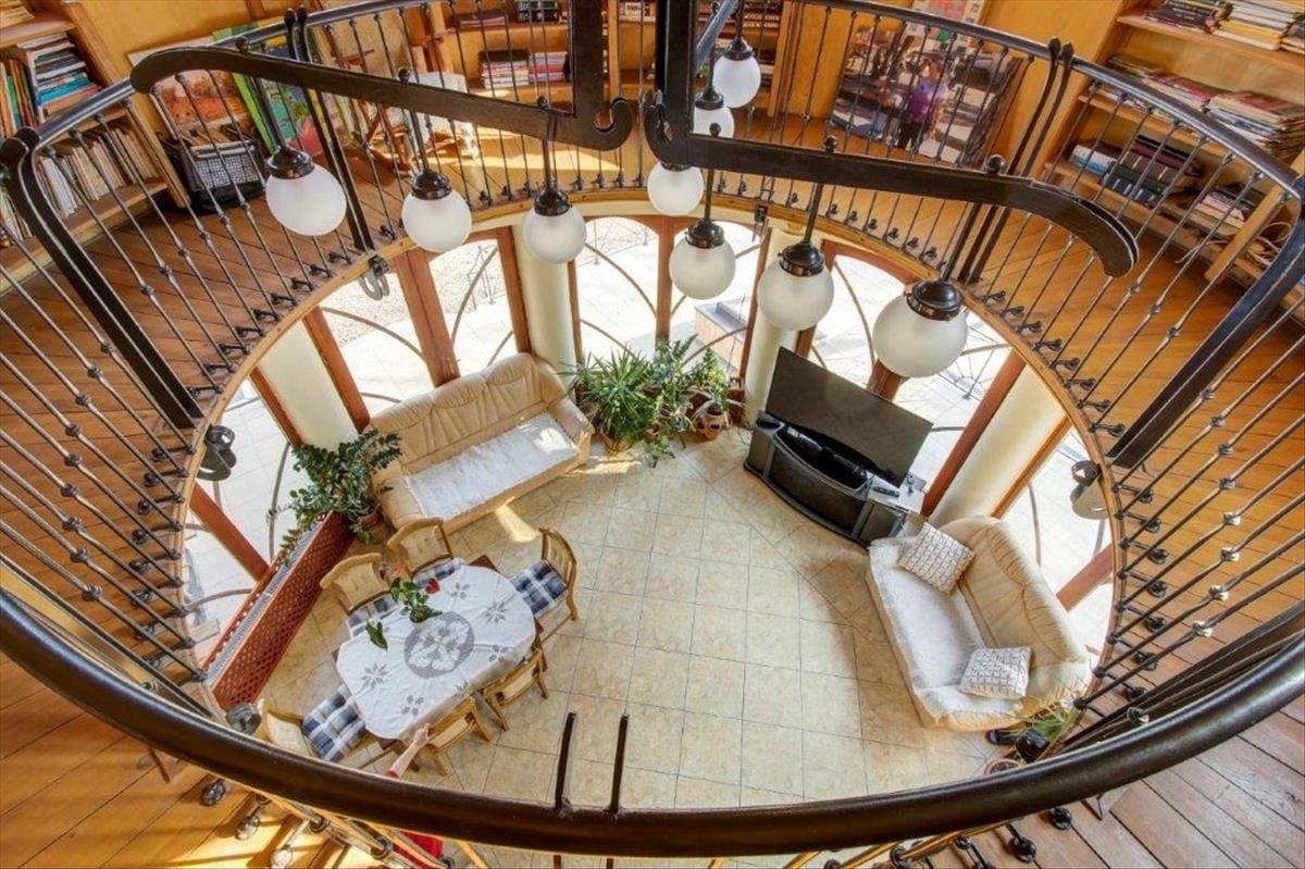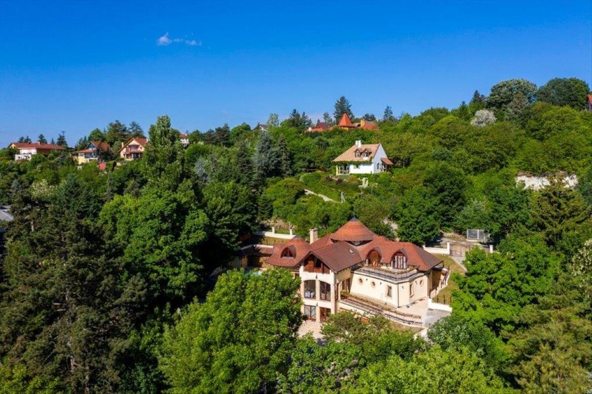 Szentendrén eladó egy 2011-ben épült, 3 szintes „Organikus” családi ház (6 hálószoba - mindegyik fürdőszobával, nappali kupolás galériával és hatalmas teraszok csodálatos panorámával, szabadtéri medence, boros „pince”, konditerem, szauna, az alsó szinten egy szolgálati lakás van kisegítő személy részére).