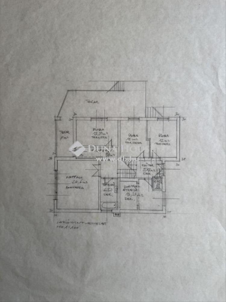 - I. emelet: nappali + 3 szoba, konyha, fürdő, mosdó