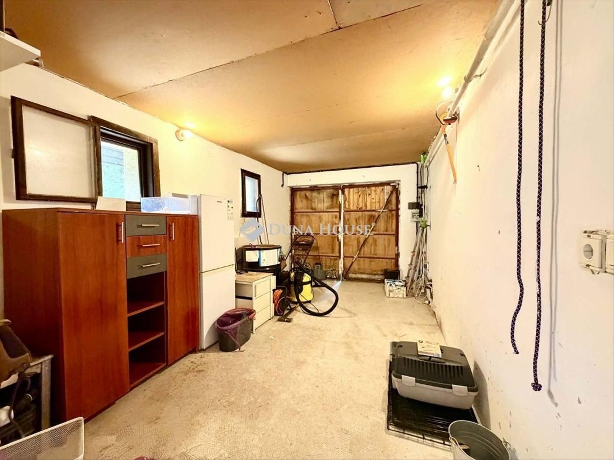 A ház rendelkezik egy szervesen hozzáépített 15 m2-es garázzsal, amelyből a házba is van közvetlen bejárat, valamint a ház alatt 30 m2 félszuterén tároló is található. Hivatalos telepített elektromos autótöltő 2025-ben került kiépítésre. a telken belül 2 autó tud kényelmesen parkolni.