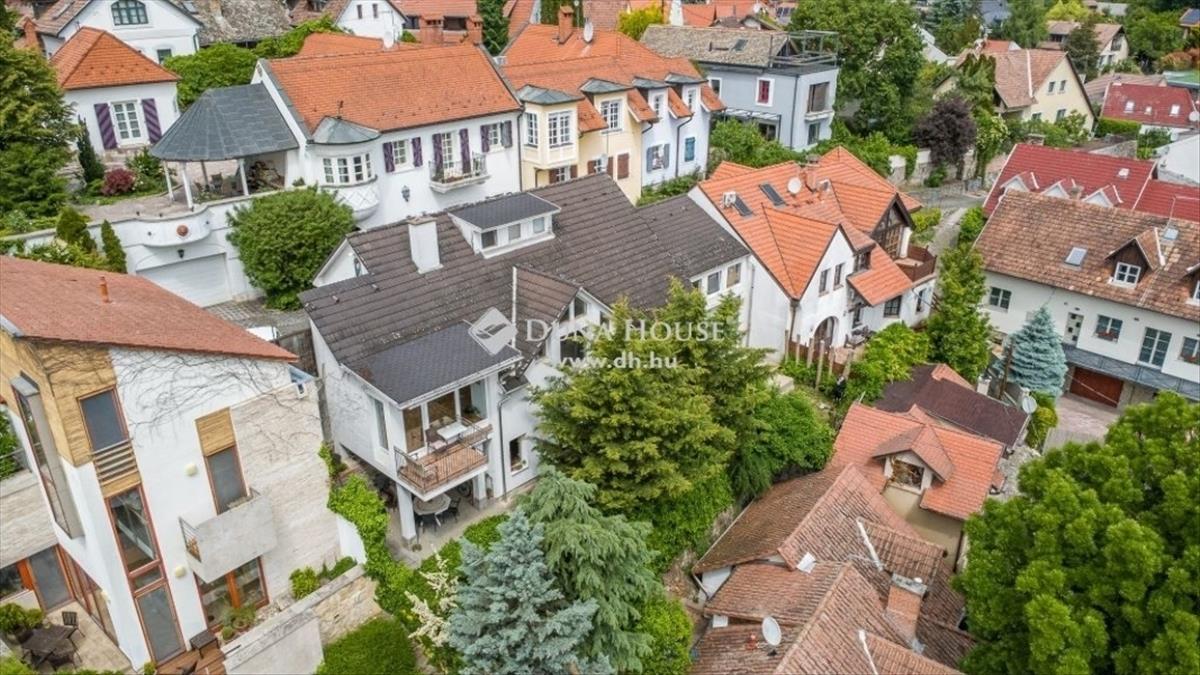 Egyedi építészeti remekmű Szentendre belvárosában – panoráma, belső harmóniaEladó Szentendre történelmi belvárosának egyik legkülönlegesebb lakóháza, az Angyal utcában, mindössze pár lépésre a Duna-parttól és a Fő tértől. Itt valóban ritkaságszámba megy az eladó ingatlan – különösen ilyen paraméterekkel. a 280 m²-es épületet 2004-ben Vincze László építész saját családja számára álmodta meg és valósította meg – ennek minden részletében nyoma van: átgondolt térszervezés, nagyvonalú belmagasság, remek fényviszonyok és prémium minőségű kivitelezés. a ház délkeleti fekvésének és hatalmas nyílászáróinak köszönhetően a természetes fény folyamatosan jelen van az élettérben. a panorámás kilátás a zöldellő fákra és a városra lenyűgöző – igazi nyugalomsziget a belváros szívében. Főbb jellemzők: 15 cm-es homlokzati szigetelés Gázkazános fűtés, részben padló-, részben radiátoros hőleadással Klímaberendezés Kétállásos garázs + két felszíni beálló Kiemelkedően biztonságos környék, barátságos, nyugodt környezettelA ház belső kialakítása lenyűgöző: tágas közösségi terek, szeparált hálószobák, reprezentatív étkező, több fürdőszoba, valamint szinteltolásos kialakítás, amely egyedivé teszi az enteriőrt. Ez az ingatlan nem csupán otthon, hanem életstílus. További részletekért, keressen bizalommal – komoly érdeklődőknek privát bejárás biztosított.