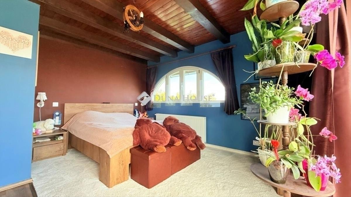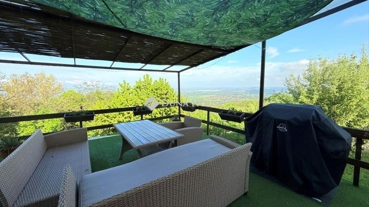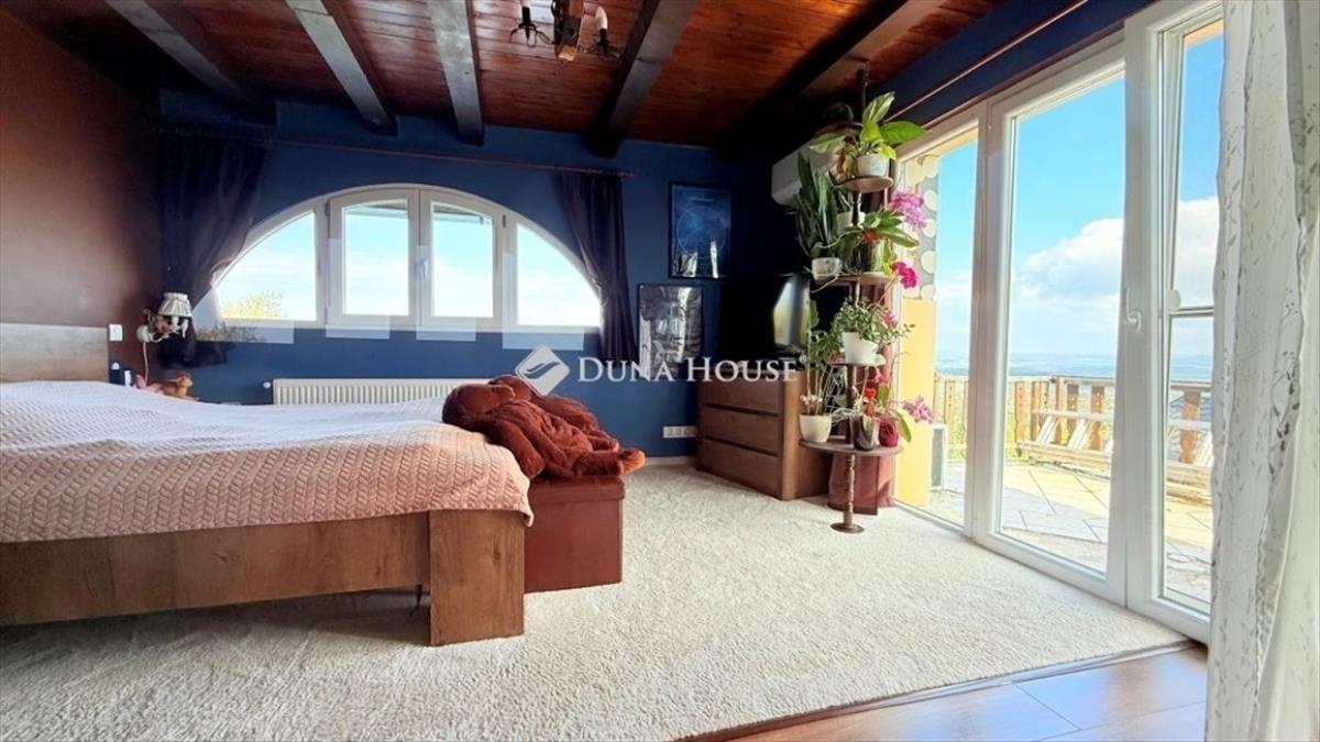 A földszinten az előszobába, majd onnan az étkezős konyhába jutunk. a nappalit egy duplaszárnyú terasz ajtóval akár egybenyithatjuk a kb. 40 Nm-es fedett terasszal. Semmi nem zavarja a pazar kilátást. Található még itt egy zuhanyzós fürdőszoba is. Lépcsőn jutunk a tetőtérbe, ahol az átalakítást követően egy kellemes méretű hálószoba terasszal, egy nagy méretű fürdőszoba, a közlekedőben gardrób, és egy gardrób/tároló/dolgozó került kialakításra. Igény esetén két hálószoba is megoldható. Mindenhonnan hatalmas, egyedi ablakokon keresztül csodálhatjuk a kilátást.