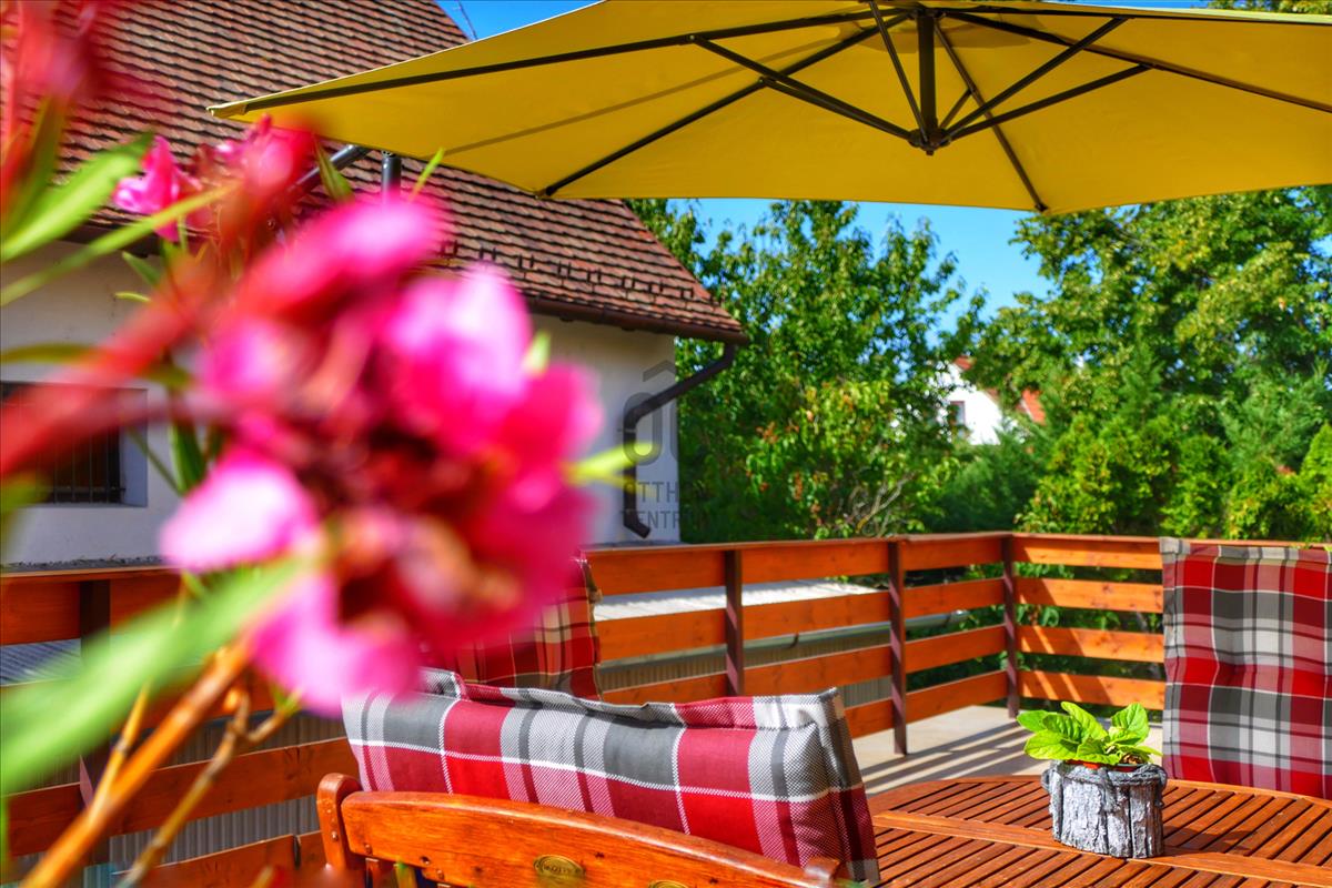 Az alsó szinten nappali, étkezős konyha, hálószoba, fürdő és közvetlen teraszkapcsolat biztosítja a kényelmet. a 37 m²-es terasz leanderekkel, kerti bútorral és napernyővel a nyári esték tökéletes helyszíne – innen hallhatjuk a szarvasbőgést vagy épp gyönyörködhetünk a csillaghullásban. . !