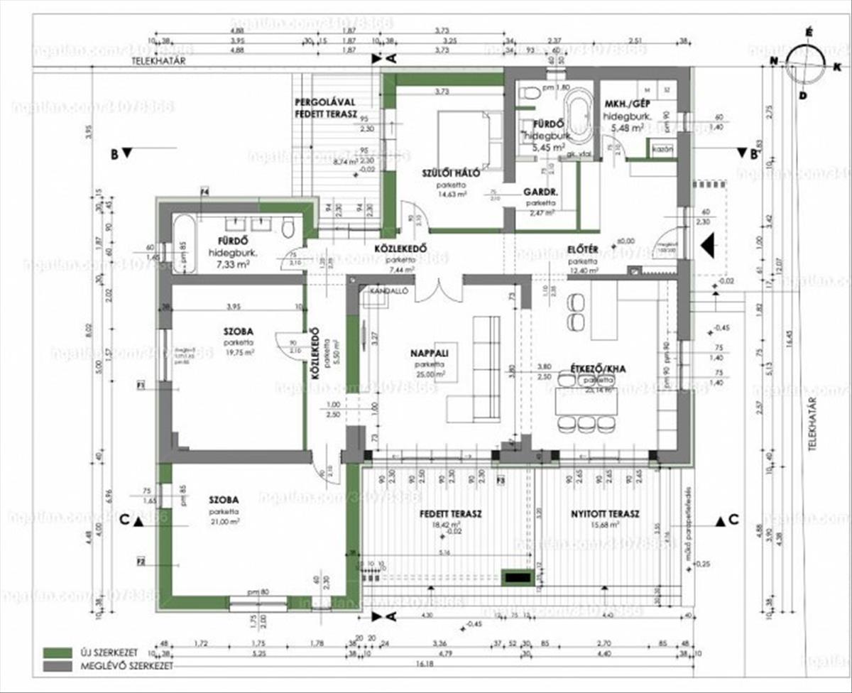 - 3 db hálószoba + 1db gardróbszoba (hálószobák 20nm -ek)