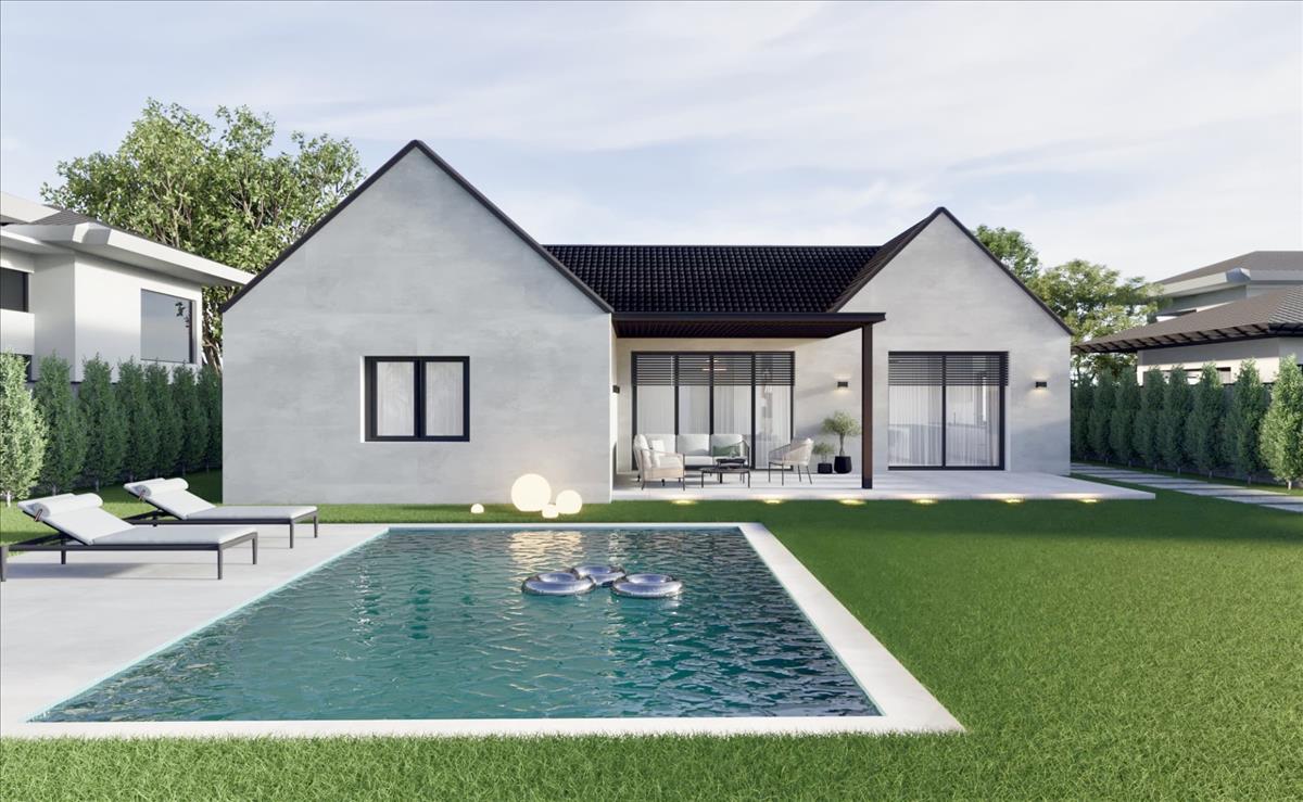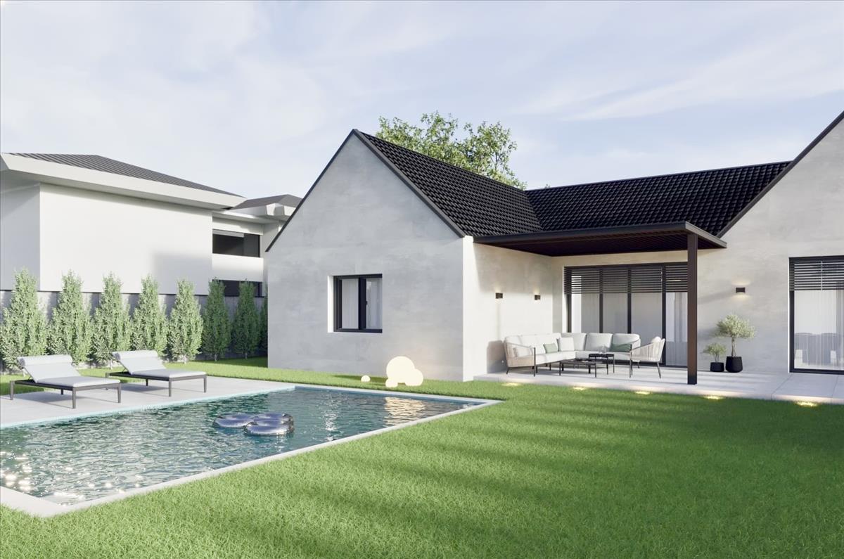 140 Nm-es családiház /Nappali + 3 háló + gardrób + 2 fürdőszoba/