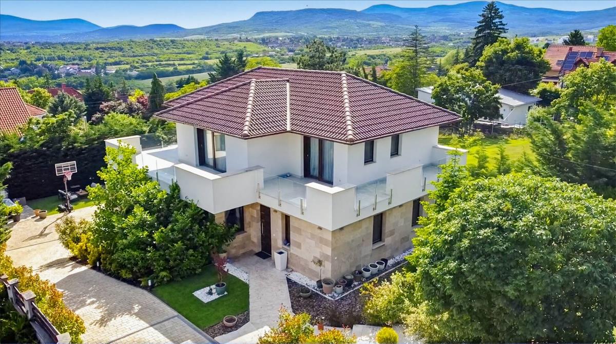 6 + 1 félszoba | 4 háló | 2 fürdő | 4 wc | 75 m² panorámás terasz | 2 állásos garázs