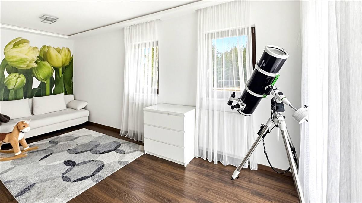 Az otthon egy 889 m²-es, parkosított, intim telken helyezkedik el Pismány egyik legkedveltebb, aszfaltos úton megközelíthető részén. a panoráma örök, a környezet csendes, a levegő tiszta – mégis Budapest mindössze 15–20 perc autóval.