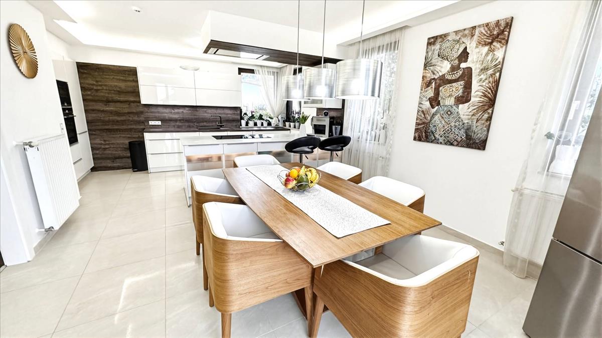Ez a 2022-ben műszakilag és esztétikailag minden részletében megújított, háromszintes, 291 m²-es családi rezidencia pontosan ezt képviseli.