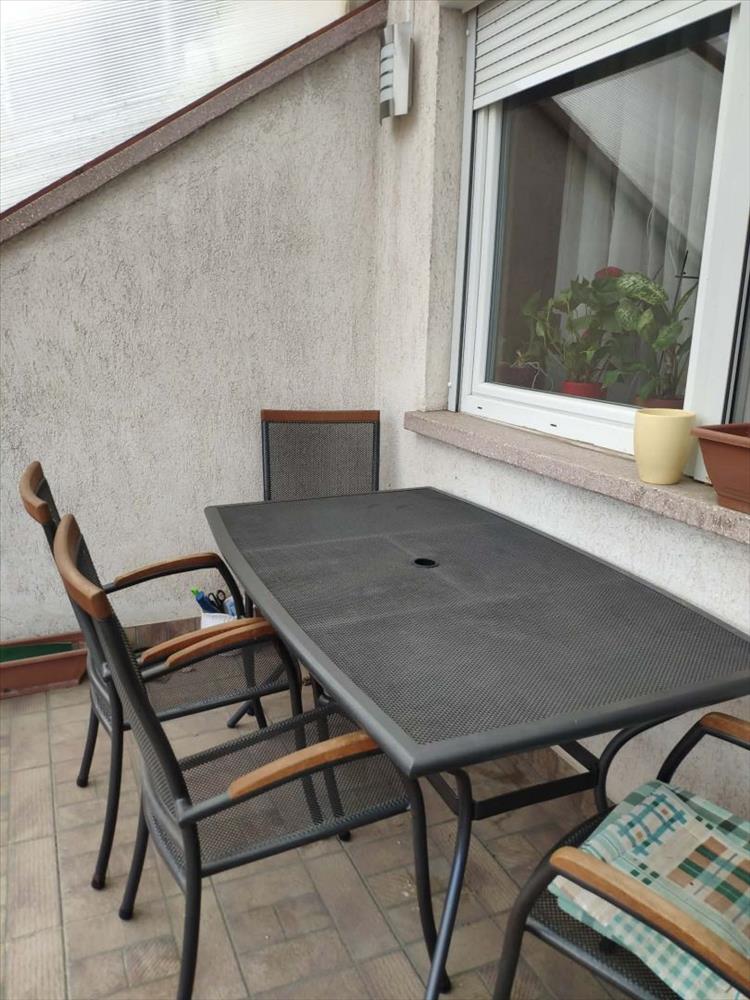 Csongrád -Csanád Vármegyében, Szentesen, a Vásárhelyi úton társasházi lakás, garázzsal eladó! a tulajdonos értékegyeztetéssel, 1+2 félszobás lakást beszámít, max. 2. -Ik emeletig. Előnyt képez, ha a beszámított ingatlan az alábbi utcákban található: József Attila u. , Páva u. , Somogyi Béla u. Szabadság tér. Az ingatlan 110 m2- es, és 3 szinten helyezkedik el. a földszinten található egy jól felszerelt konyha ( a konyha bútor a vételárban benne van ), egy közlekedő folyosó, melyből nyílik egy toalett, kézmosóval. Tovább haladva az impozáns étkezőbe jutunk, ahol akár 8 fő is kényelmesen tud étkezni. Az étkezőből a nagy méretű nappali fogadja a vendégeket, ahol egy hűtő/fűtő klíma is szolgálja a tulajdonosok kényelmét. a nappali kertkapcsolatos, szép kerti kiülővel, ez a terület kb. 50 m2. a nappaliból fából készült lépcsőn jutunk az első szintre, ahol 1 hálószoba, és nappali található. Felújított fürdőszoba is helyet kapott ezen a szinten. ( Kád, és tusoló kabin ). Ezen a szinten található egy tágas erkély is. Tovább haladva, a második szinten 2 szoba található, illetve tusoló, toalettel. a ház fűtése gázcirkó, padlófűtéssel. a fűtés számla 8000. -/ Hó! ! Az ingatlan 2019- ben felújításon esett át. Új hideg burkoló került a régi helyére, az emeleti fürdőszoba teljes felújításon esett át. Minden nyílászáró korszerű, szigetelt. a külső falakon Terra Nova vakolat teszi időt a falakat. Az ingatlanhoz tartozik egy 18m2-- es garázs, mely külön villany óráról kapja az áramot. Szerelő aknával, és elektromos kapuval ellátott. a garázs felett padlás is található. Amennyiben felkeltettük az érdeklődését, kérem hívjon bizalommal! Az ingatlan megtekintéséhez időpont egyeztetés szükséges! Garai-Szabó Magdolna Ingatlan értékesítő +36205192248 (hivatkozási szám: m125256) FIX 3% lakáshitelre megvehető