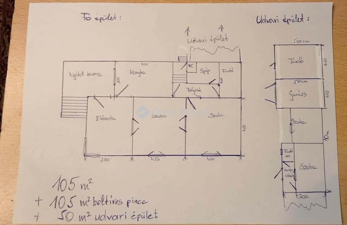 A 930 m²-es telken elhelyezkedő főépület 105nm-es alapterülettel rendelkezik, amely tágas, jól tagolt élettereket kínál. a házban két nagy méretű szoba, egy világos és tágas konyha, előszoba, terasz, kamra, külön wc és fürdőszoba található minden adott a kényelmes mindennapokhoz. Az ingatlan alatt 105nm-es boltíves pince helyezkedik el.