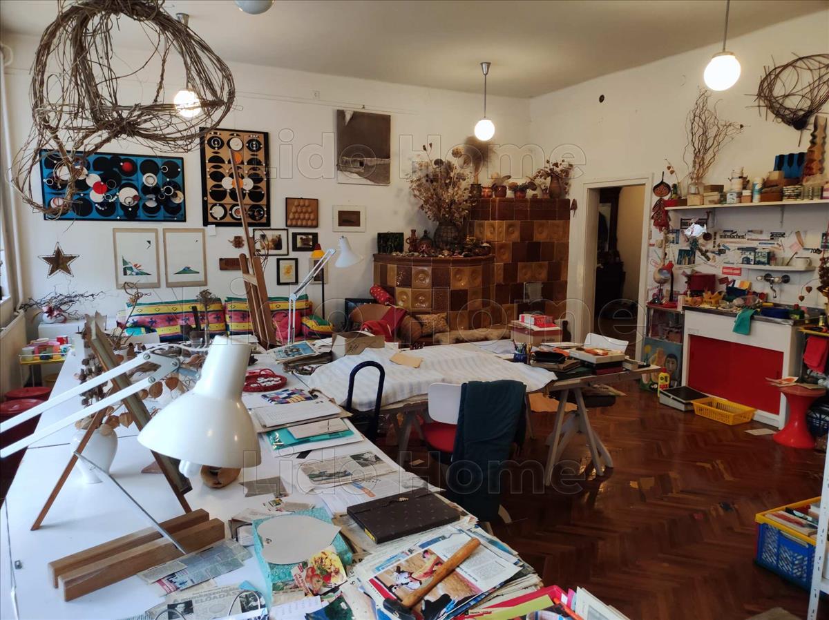 -a földszinten két tágas műterem található, valamint lakó funkciójú helyiségek, a tetőtérben lakószobák, gardrób, fürdő, illetve télikert található.