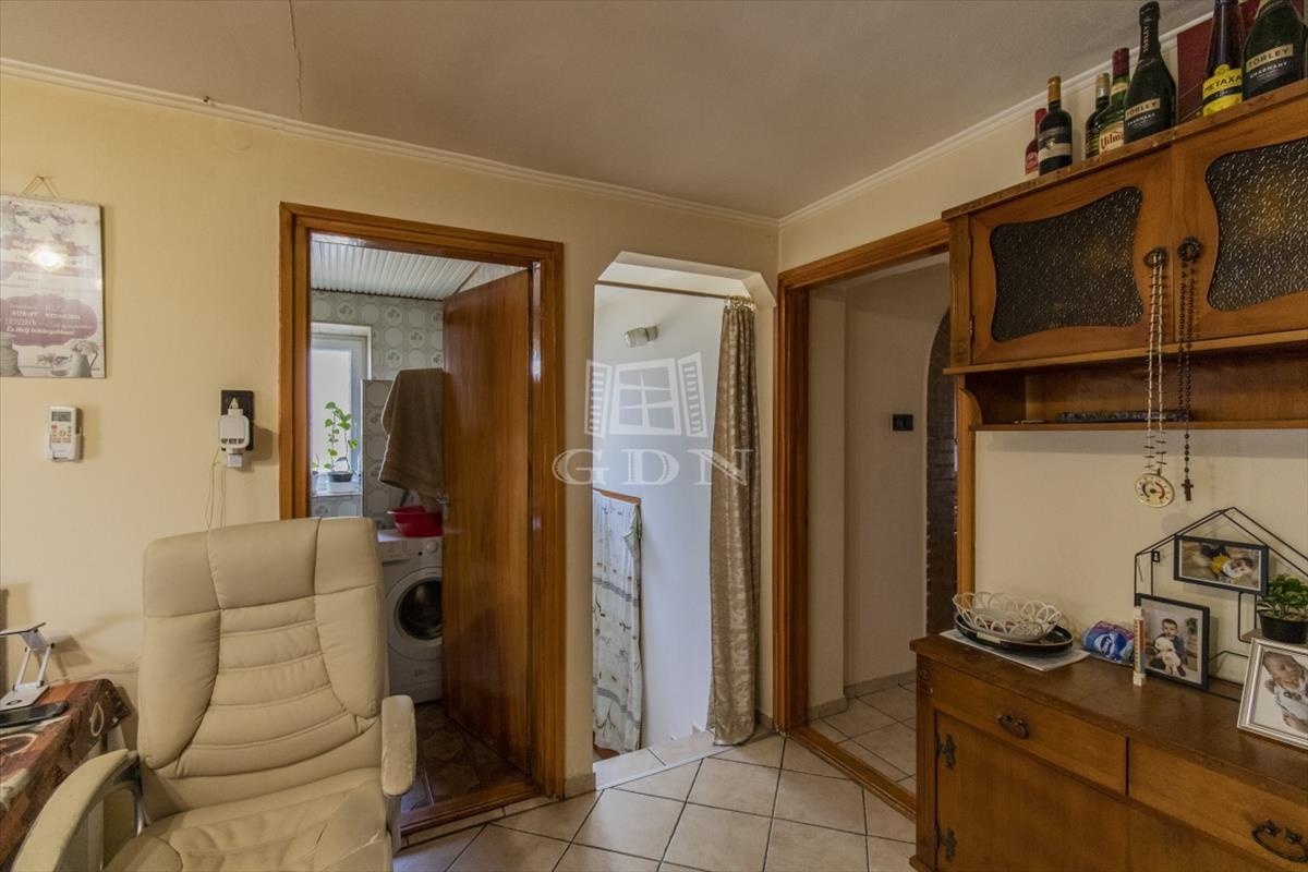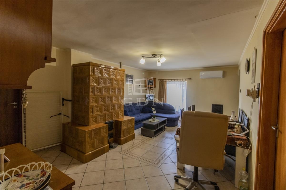 Az épületet lenti részét cserépkályhák és klíma fűti, a fenti rész kialakításra vár és felújítást igényel. Lent 2 szoba - fent 3 szoba, szintenként fürdőszoba, wc, konyha, nappali jellemzi.