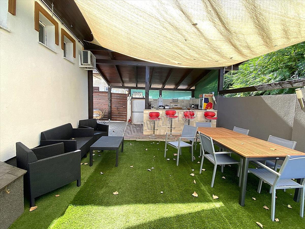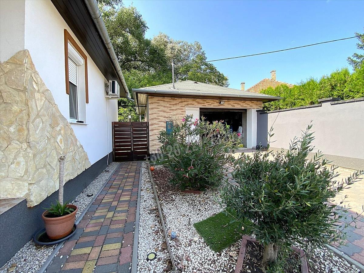 A telken található egy fűtött, szigetelt, téglából épült garázs is, amely szintén a gázcirkóról működik, valamint térkövezett autóbeálló áll rendelkezésre. a hátsó kertben igazi ékszerdoboz várja új tulajdonosát: egy fedett, bútorozott kerti konyha bárpulttal, víz-, villany- és csatornabekötéssel, mely tökéletes helyszíne baráti összejöveteleknek és családi pihenéseknek.