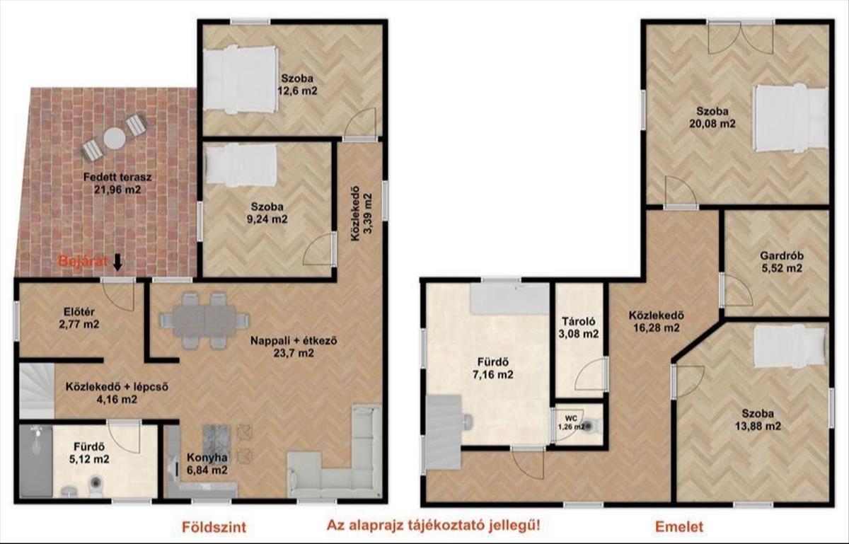 - a ház szerves részét képezi a félig fedett, 35 m2-es, igényes terasz, mely igazi kültéri életteret biztosít