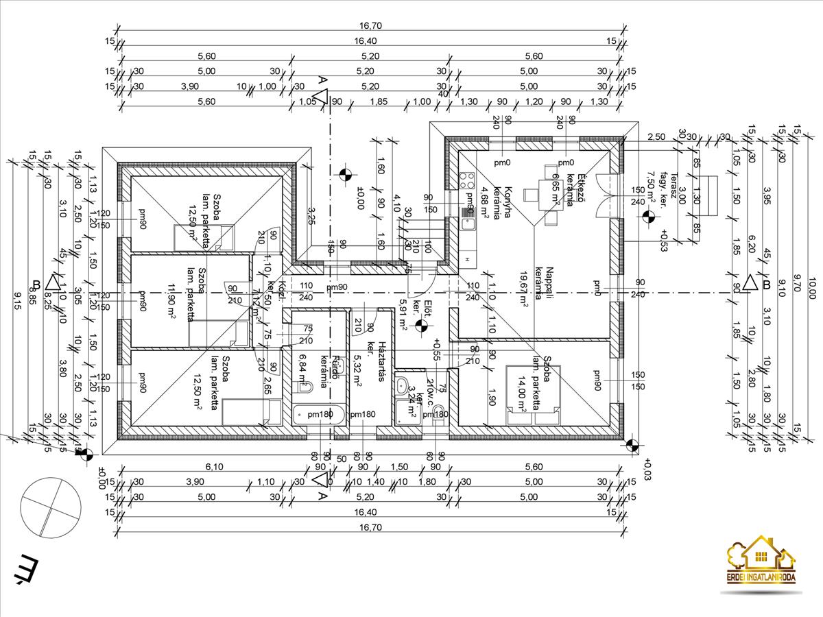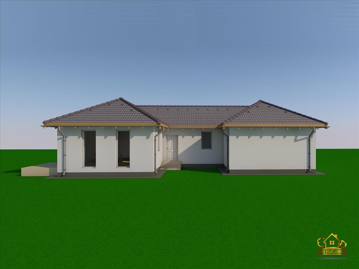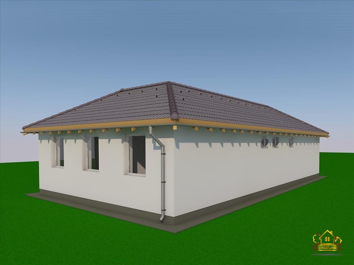 Az ingatlanban egy amerikai konyhás nappali, 4 hálószoba, egy fürdőszoba, egy külön wc, egy háztartási helyiség, egy előszoba és egy közlekedő került kialakításra. a nappalihoz egy 7, 5 m²-es terasz kapcsolódik. a saját elkerített telek nagysága 837 m².