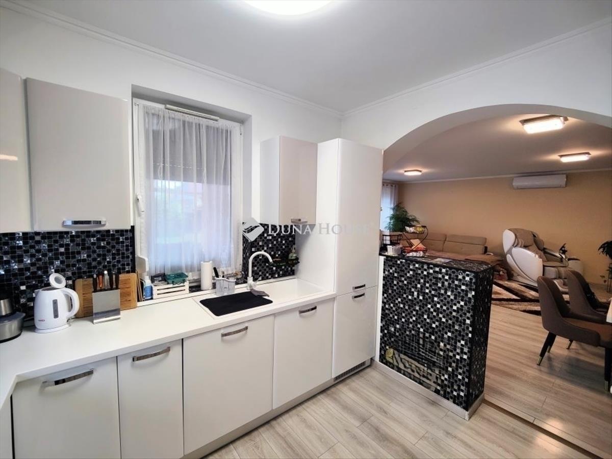 A modern, gépesített konyha az ár részét képezi, így az új tulajdonos azonnal birtokba veheti a jól felszerelt otthont.