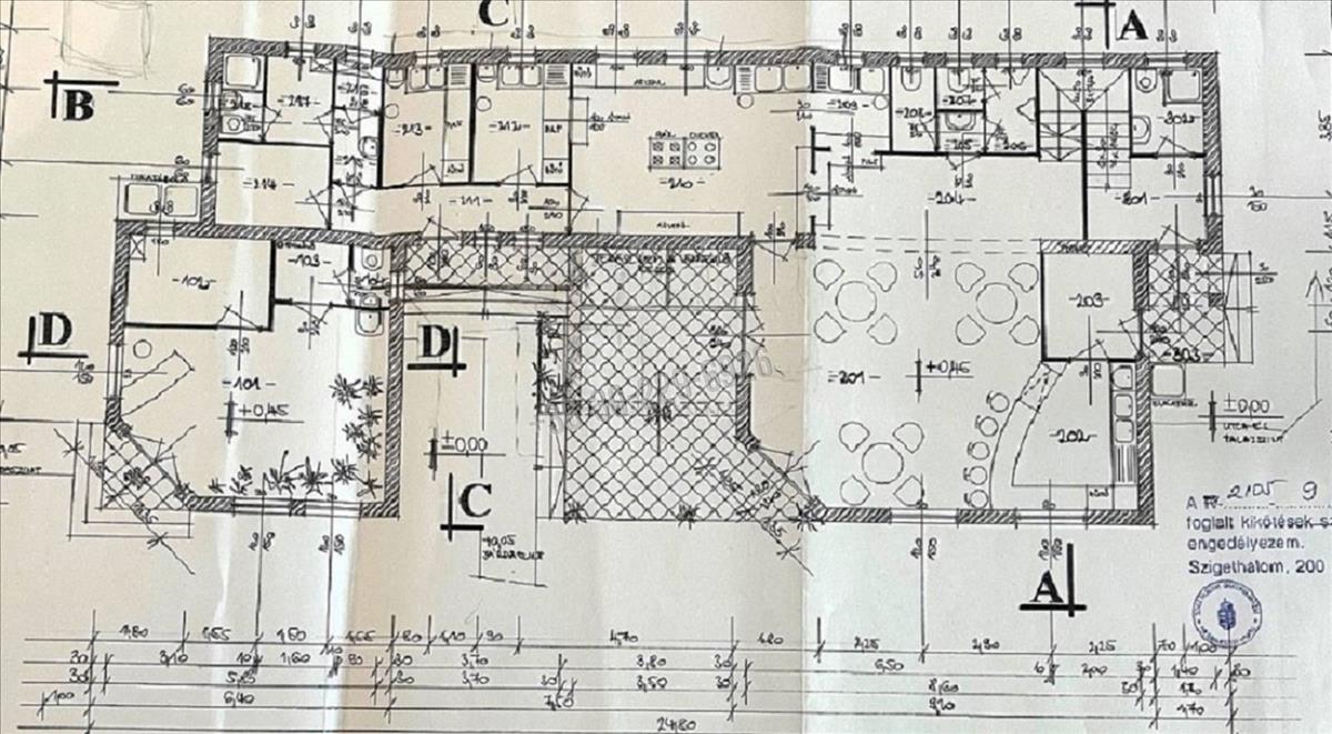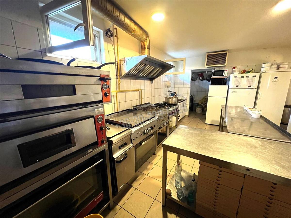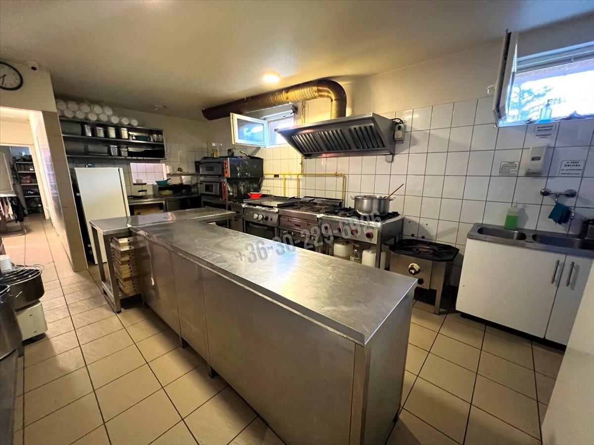 -konyha-kifőzde-étterem 122 nm, (vendégtér, raktárak, közlekedők, 2 wc, konyha, előkészítők, tárolók, zuhanyzó). Az éttermi helyiség jelenleg nem üzemel.