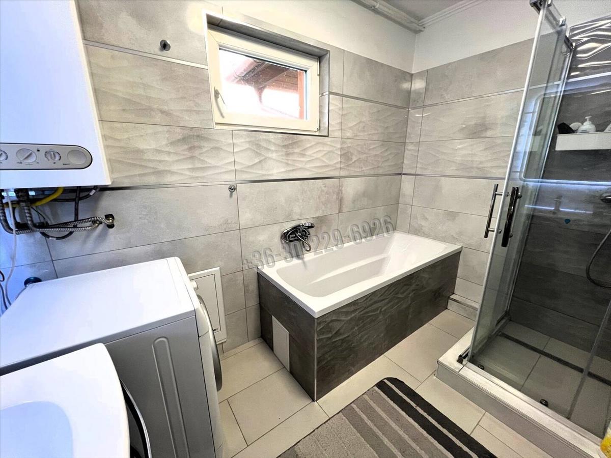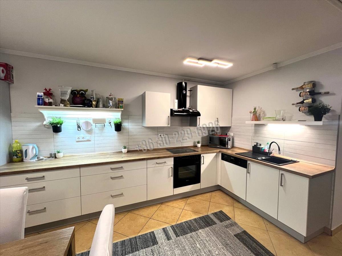 -önálló, külön bejáratú lakás 96 nm (előtér, tároló, lépcsőház, közlekedő, amerikai konyha-nappali (a beépített konyhabútor a gépekkel az eladás részét képezi), 2 szoba, kádas-zuhanyzós fürdőszoba, külön wc.