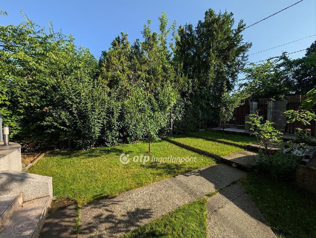 A telek körbejárható, külön előkerttel, a ház előtt pedig dupla nyitott kocsibeálló található.