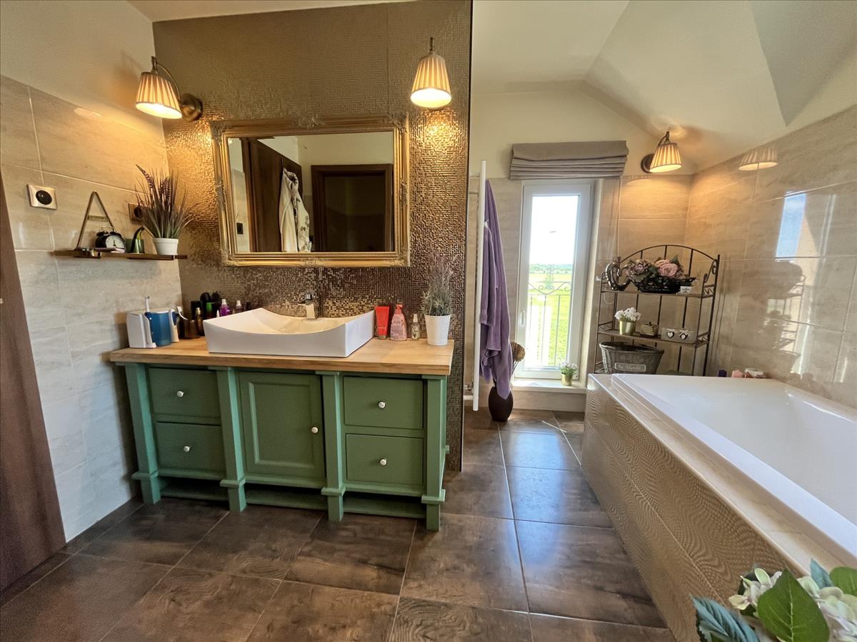 - Kádas fürdőszoba, hatalmas természetre tekintő ablakokkal