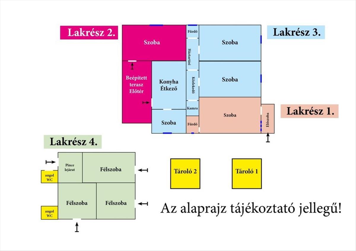 - Lak Részenként változó belmagasság (282 - 260 - 240 cm)