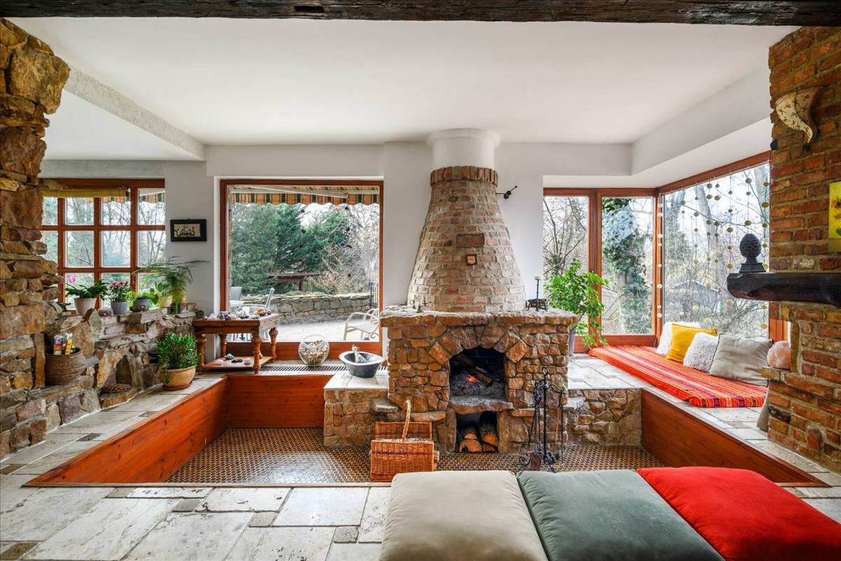A háromszintes, impozáns családi ház 2002-ben épült a jelenlegi tulajdonosok egyedi elképzelései alapján, ahol a tágas terek, a természetközeli hangulat és az igényes anyaghasználat harmonikus egységet alkotnak.