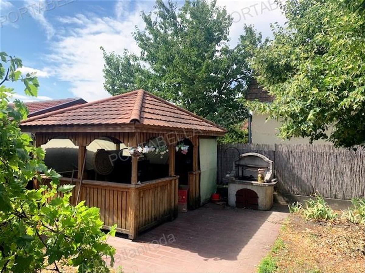 A gondozott telken két autóbeálló, filagória sütögetővel, valamint kerti csap is rendelkezésre áll.