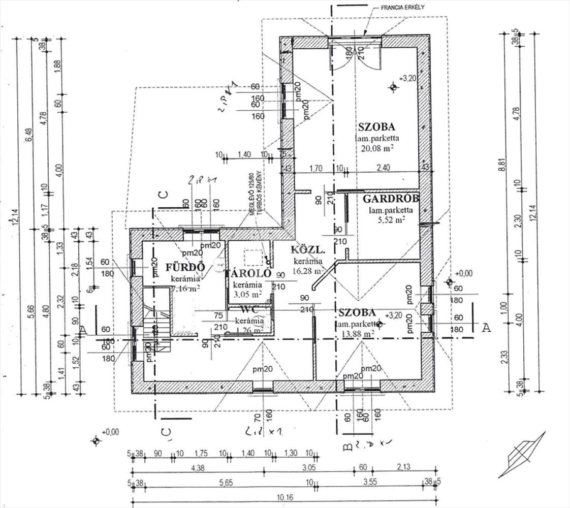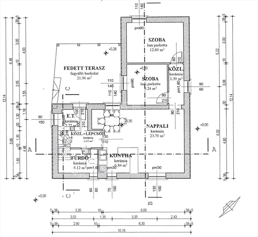 135 nm alapterületű, 2015-ben épült beton sávalapra 38-as Phorotherm téglából, 15 cm homlokzati szigeteléssel, beton födémmel, betoncserép tetővel.