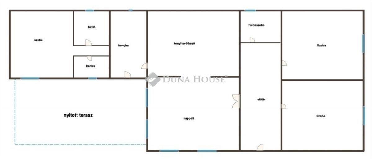 Az ingatlan jelenlegi kialakítása: hatalmas nappali+ konyha, 2 egész méretű szoba, fürdőszoba, hatalmas előtér.